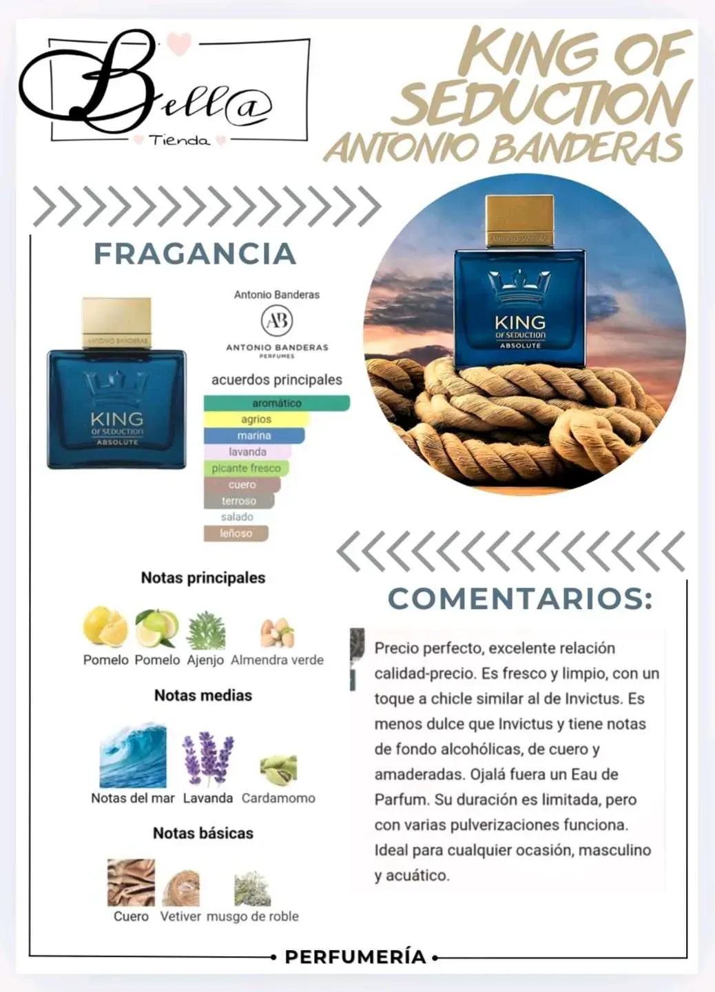 Las notas de corazón son notas marinas, lavanda y cardamomo✨️