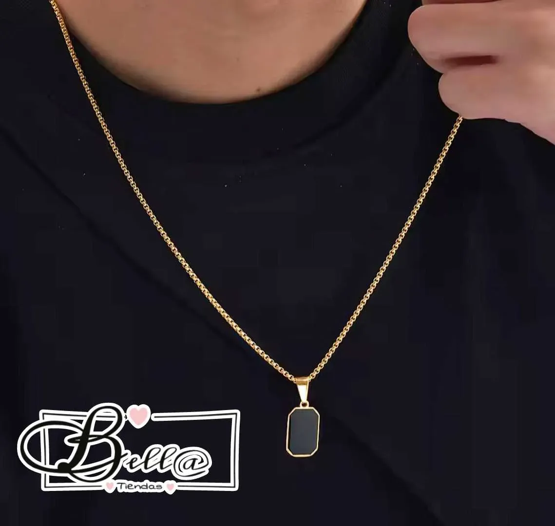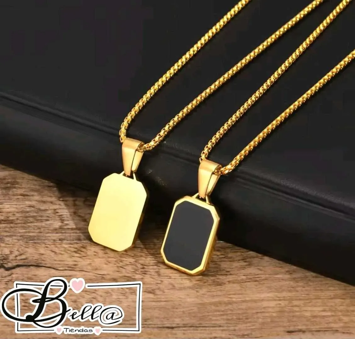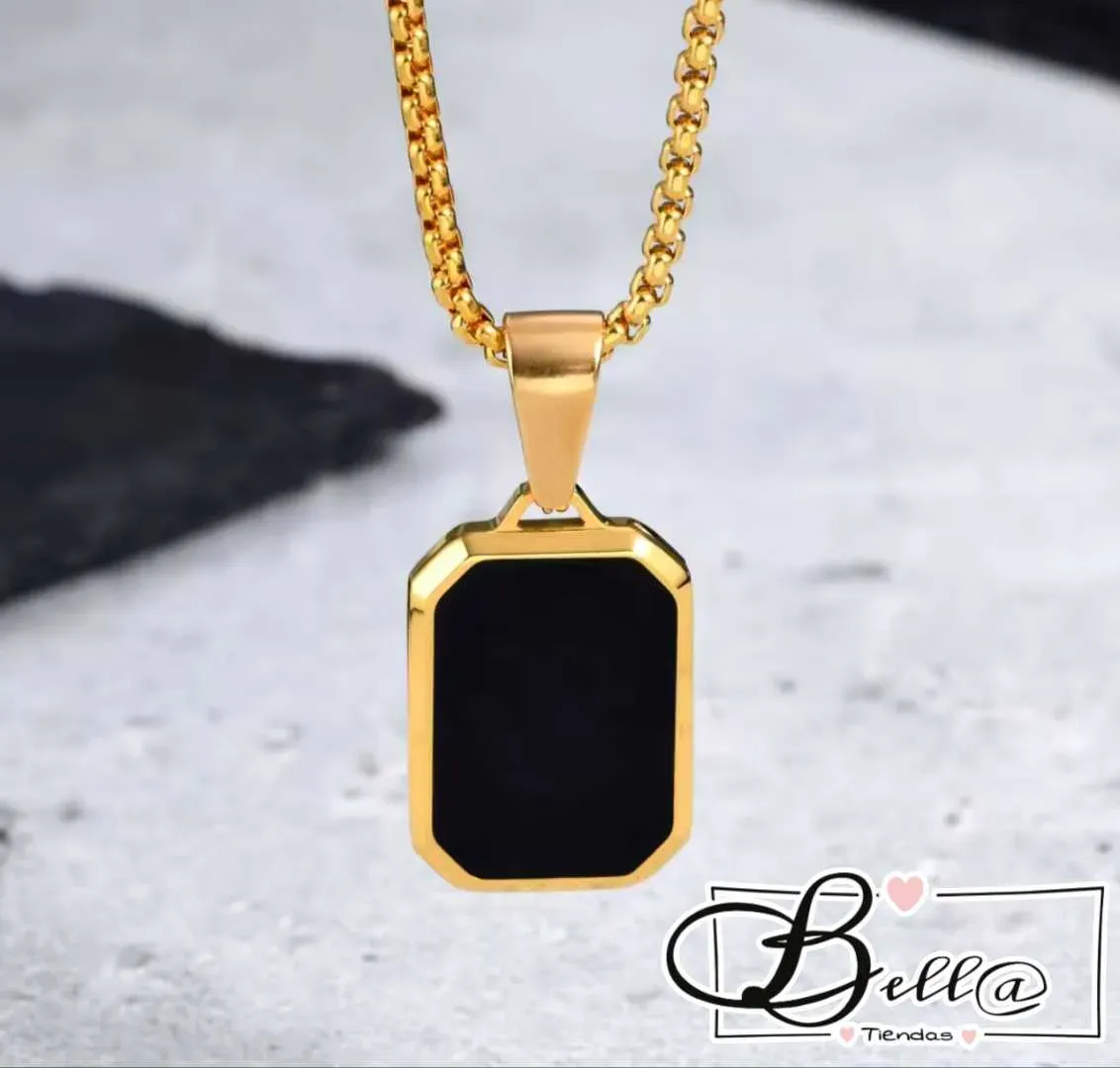 Cadena Dorada dije Placa Rectangular Negra 💛🖤