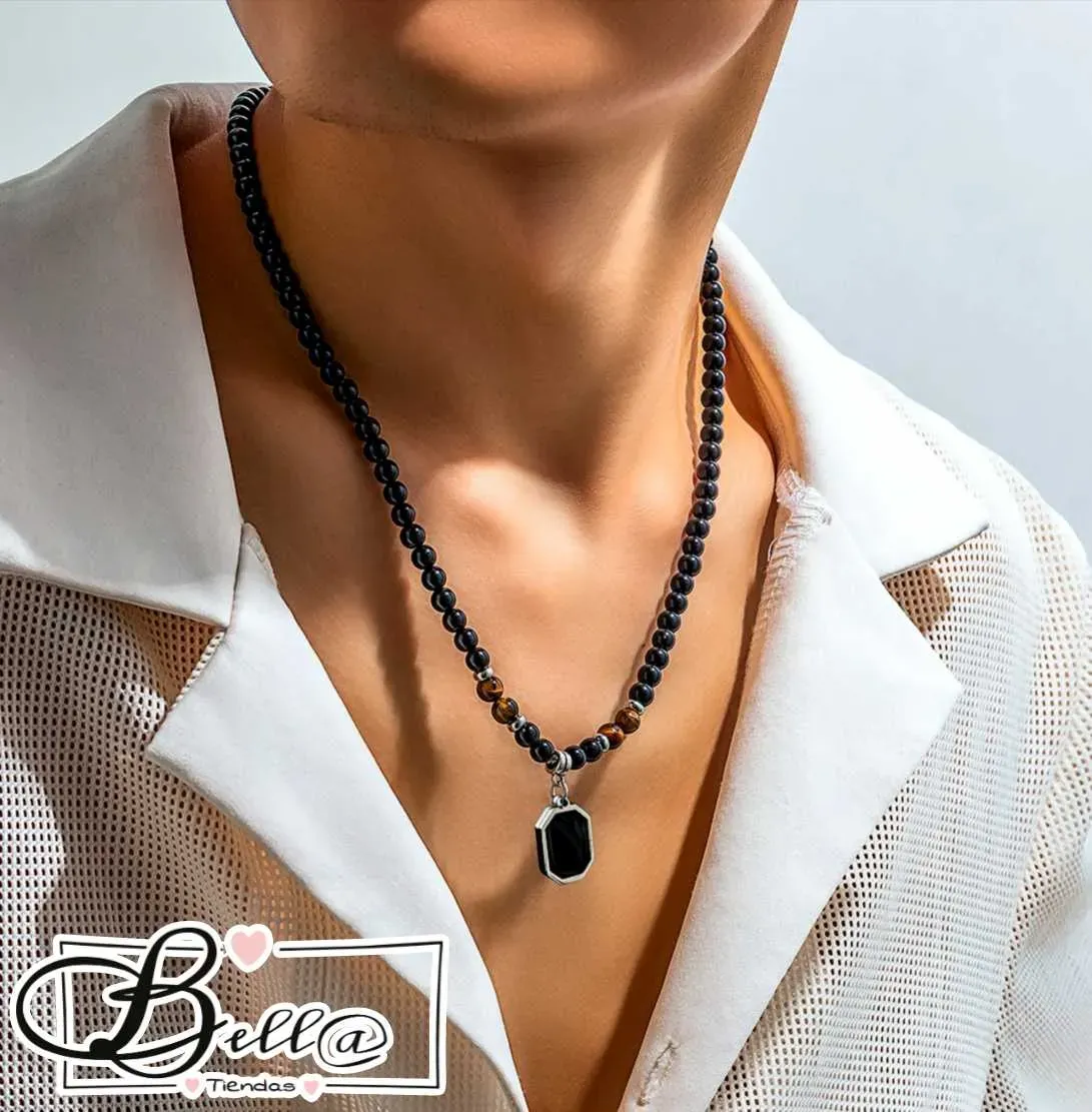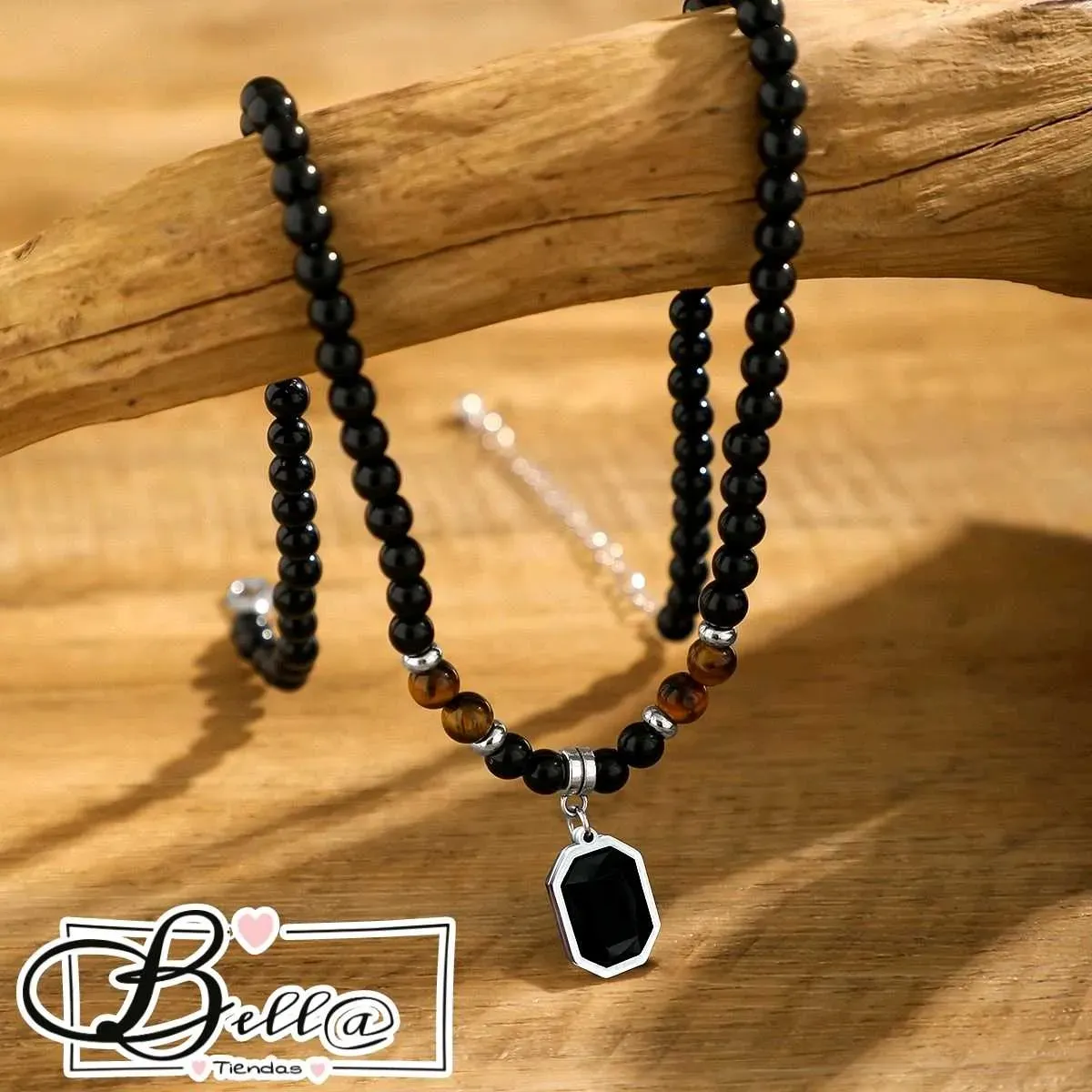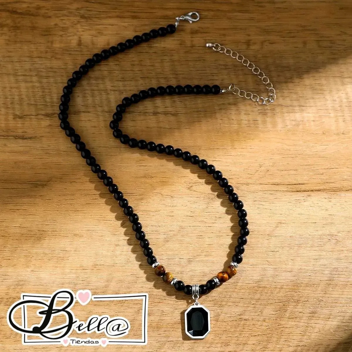 Cadenas de Cuentas Negras dije Placa Negra 🖤