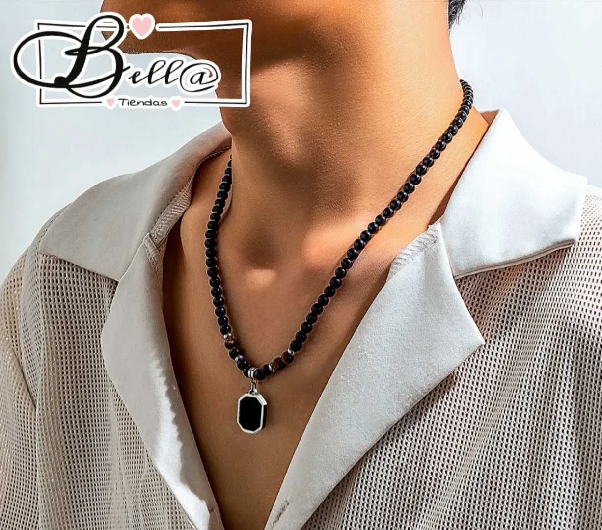 Cadena Negra de Cuentas con Placa Negra 🖤