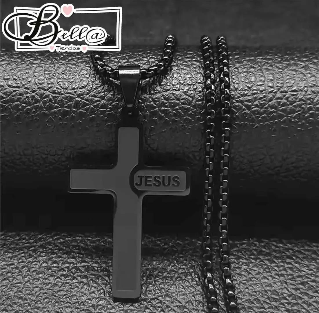 Cadena Negra dije Cruz Jesús 🖤
