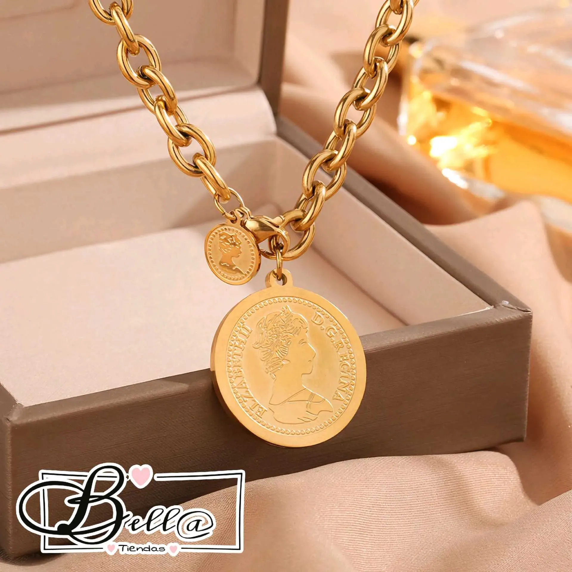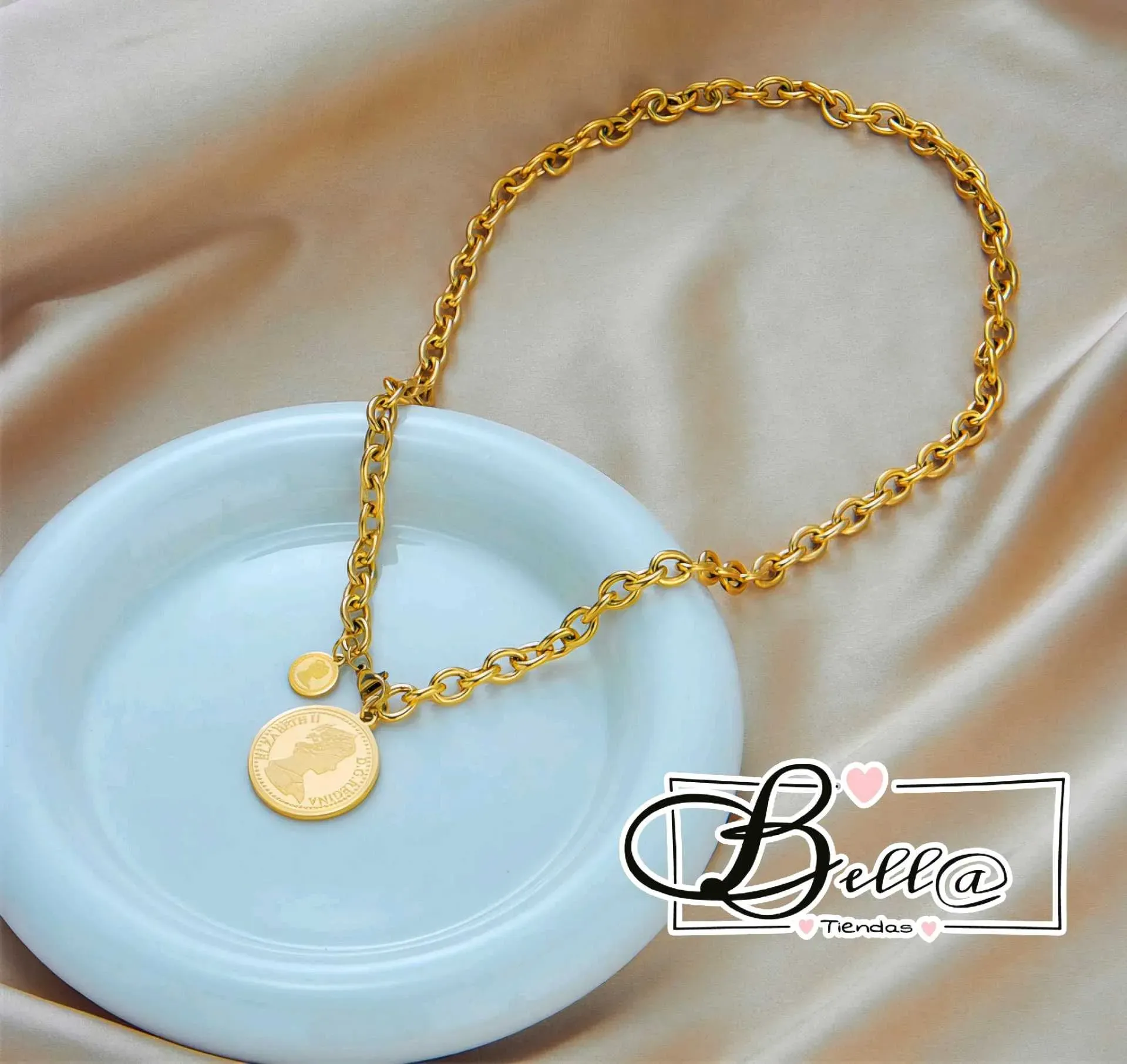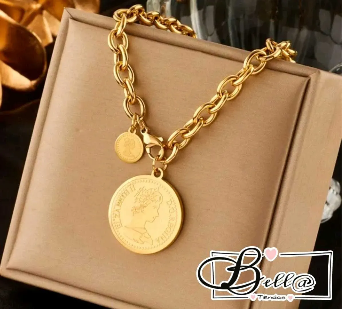 Collar con Cierre Frontal y dije de Moneda de la Reina Elizabeth 👑✨️