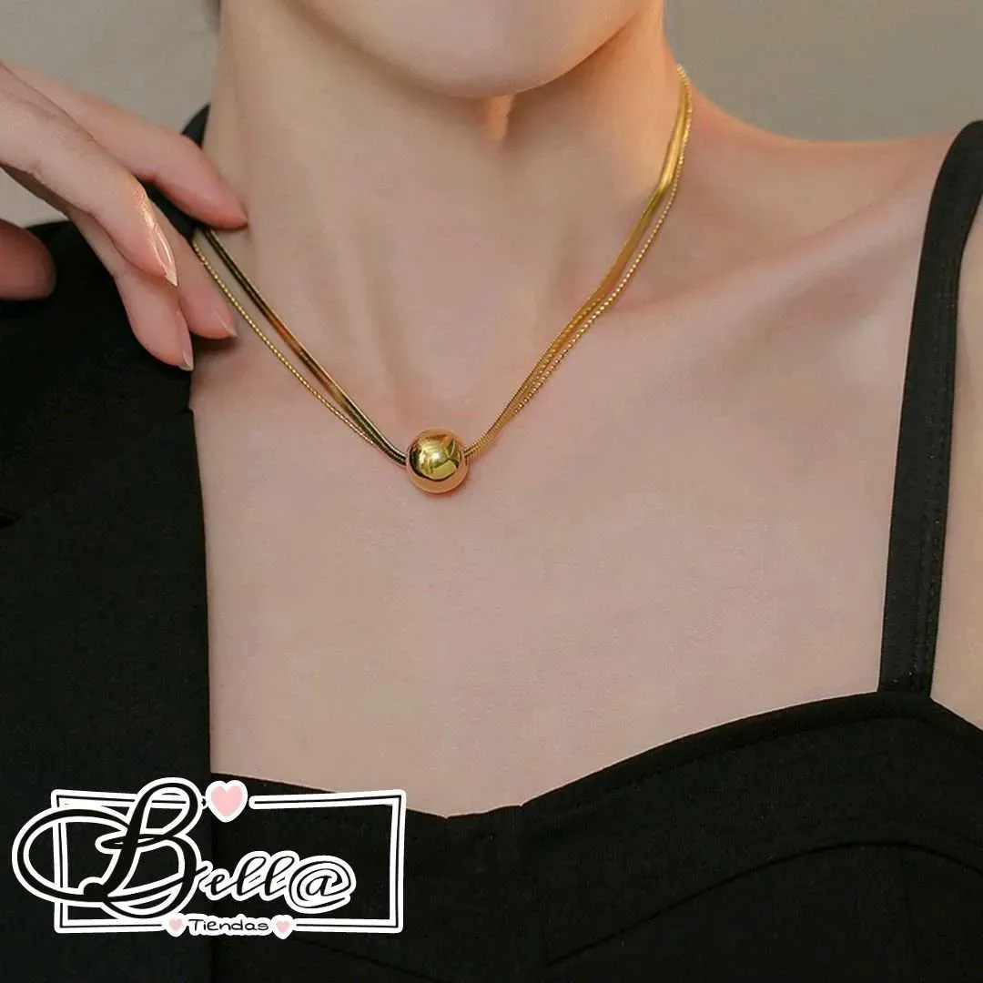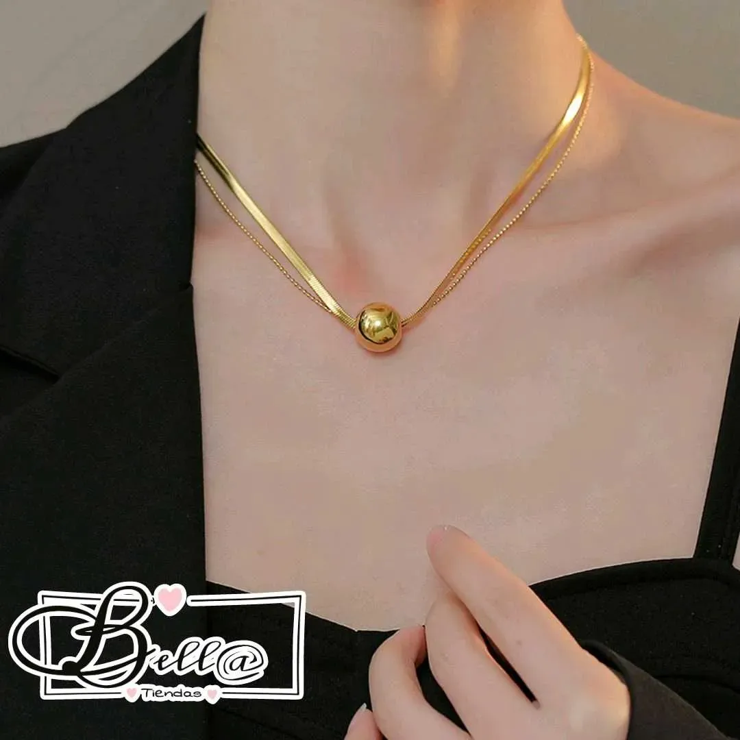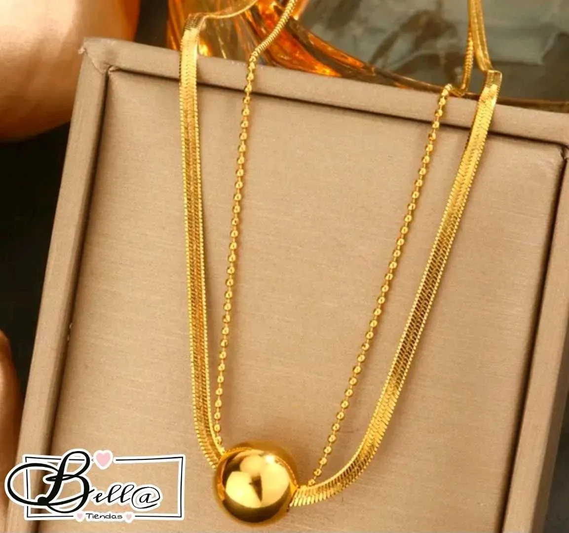 Collar Doble Piel de Serpiente y Balín 🟡✨️