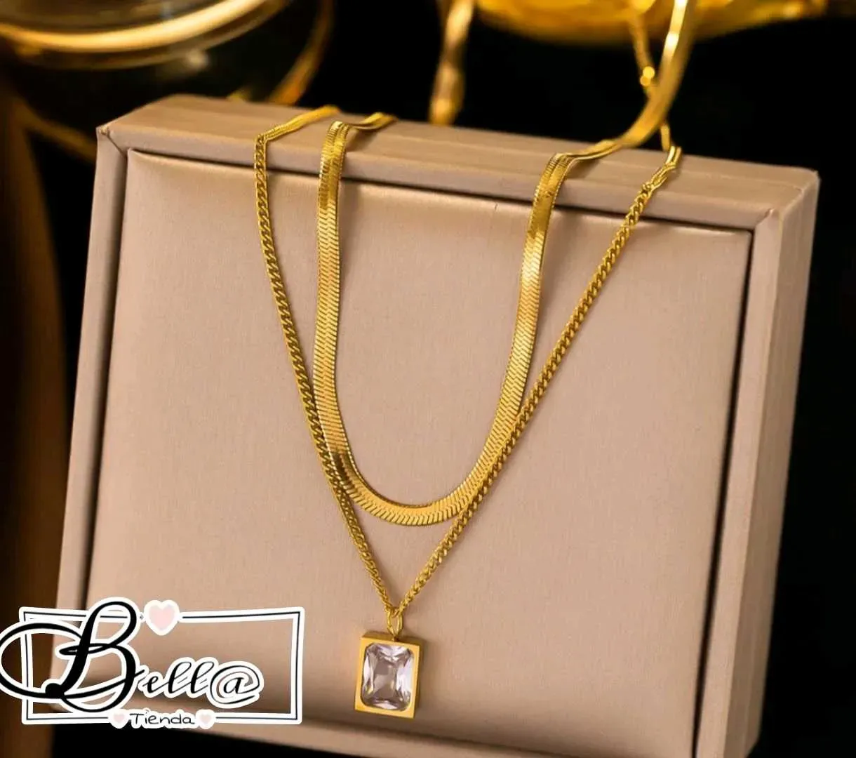 Collar Doble Piel de Serpiente dije de Cristal ✨️