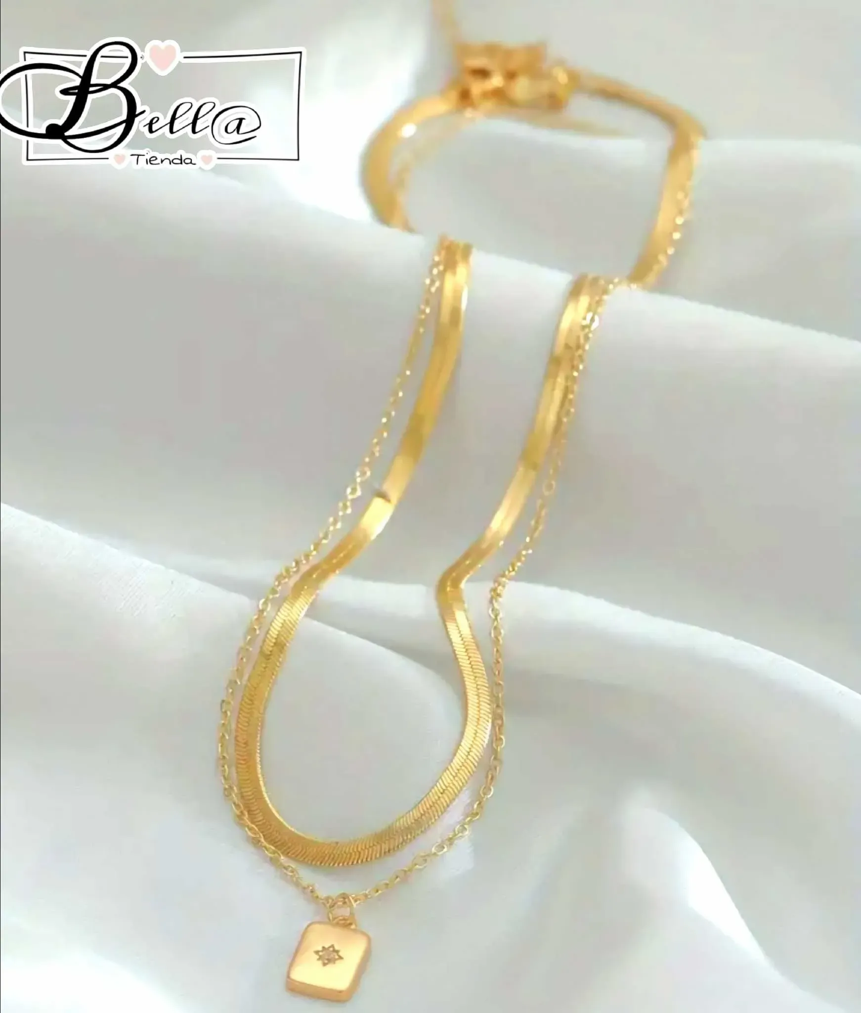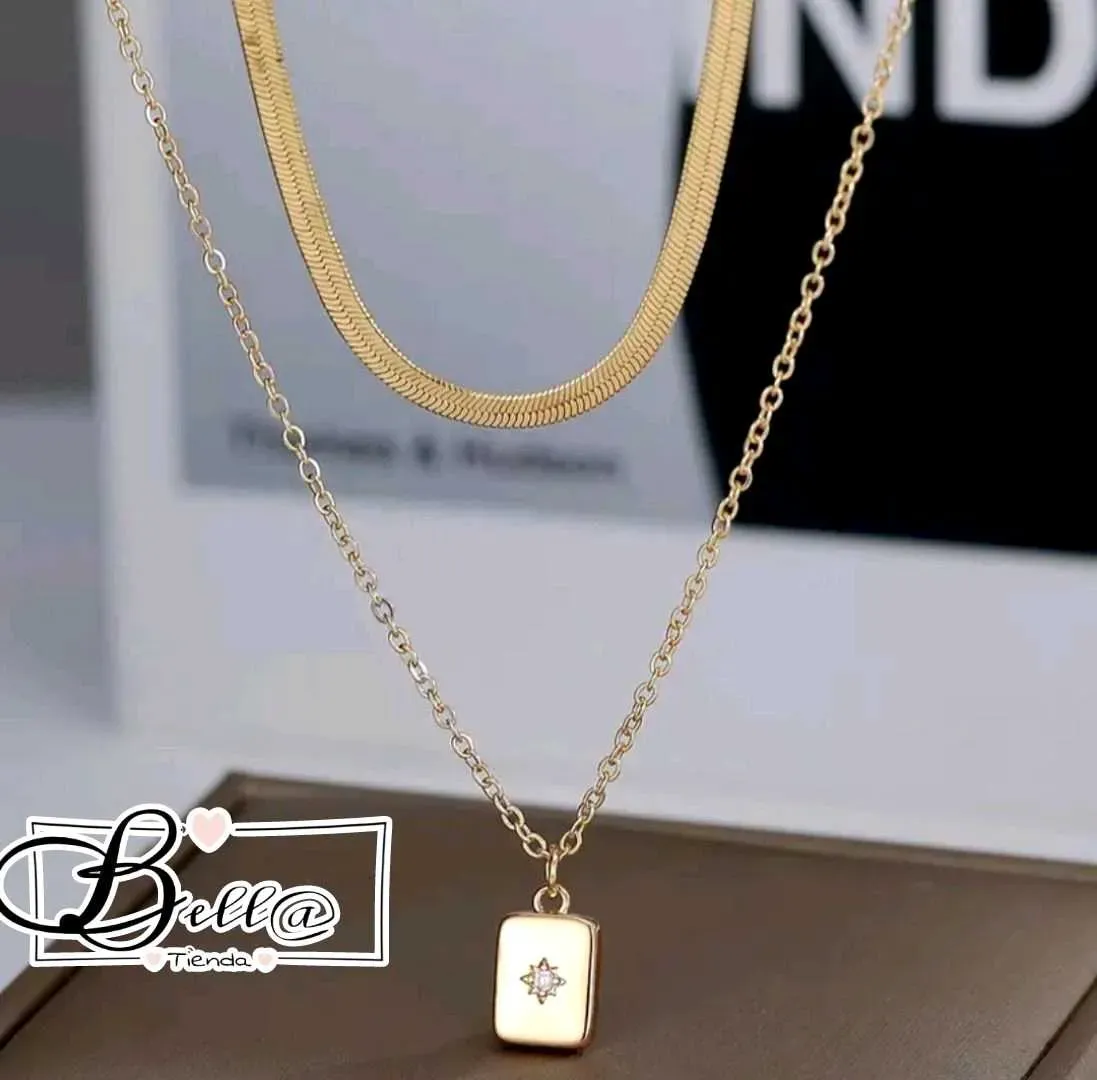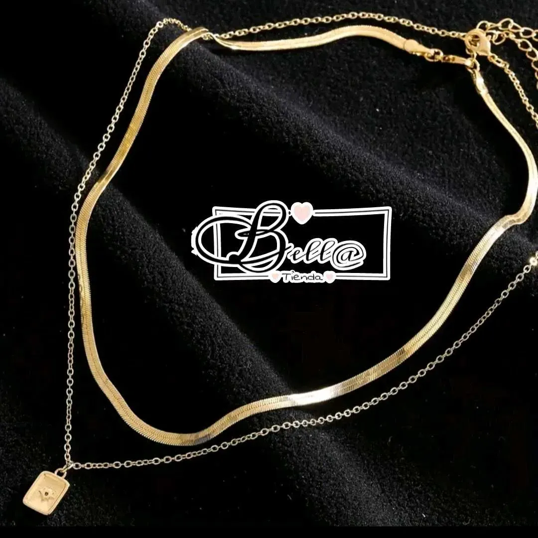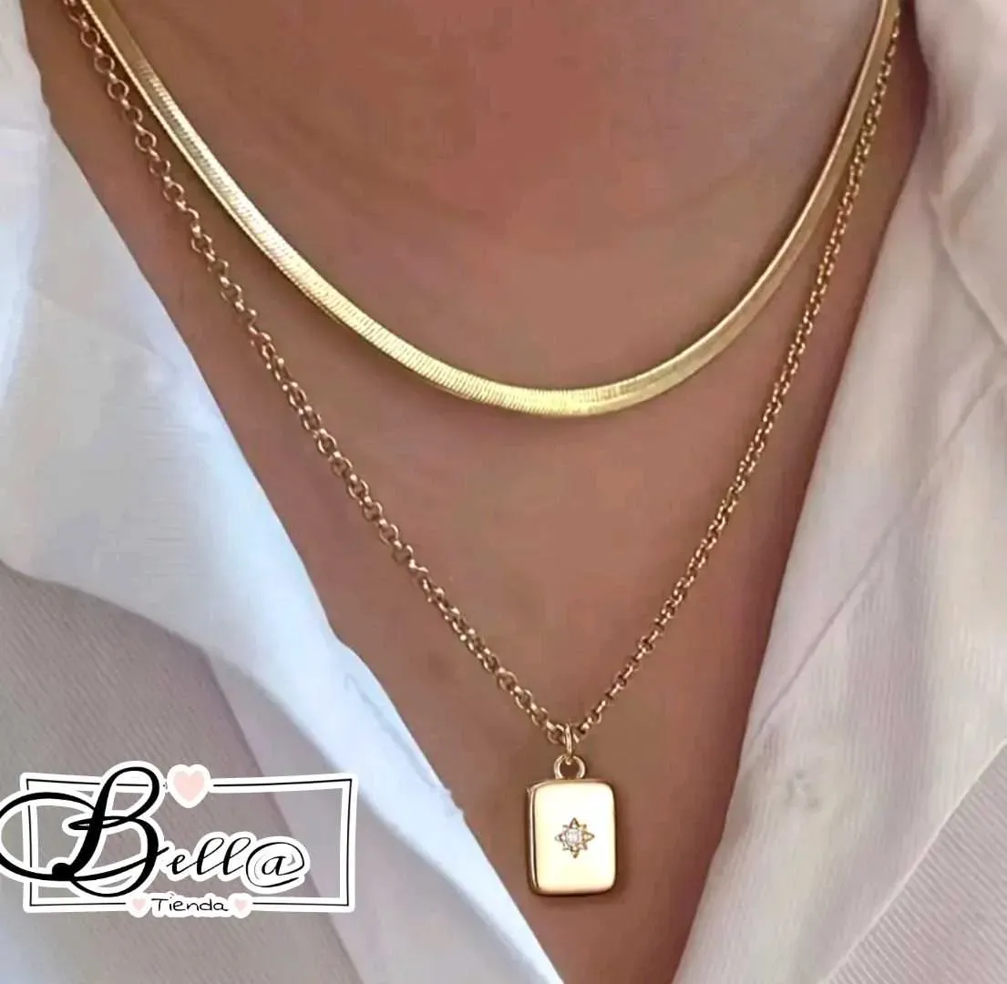 Collar Doble Tejido Piel de Serpiente con Dije de Plaquita✨️