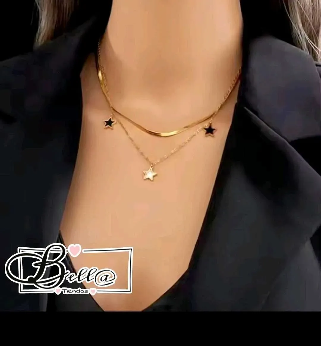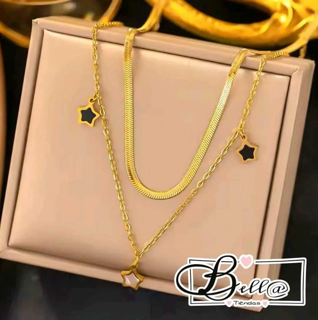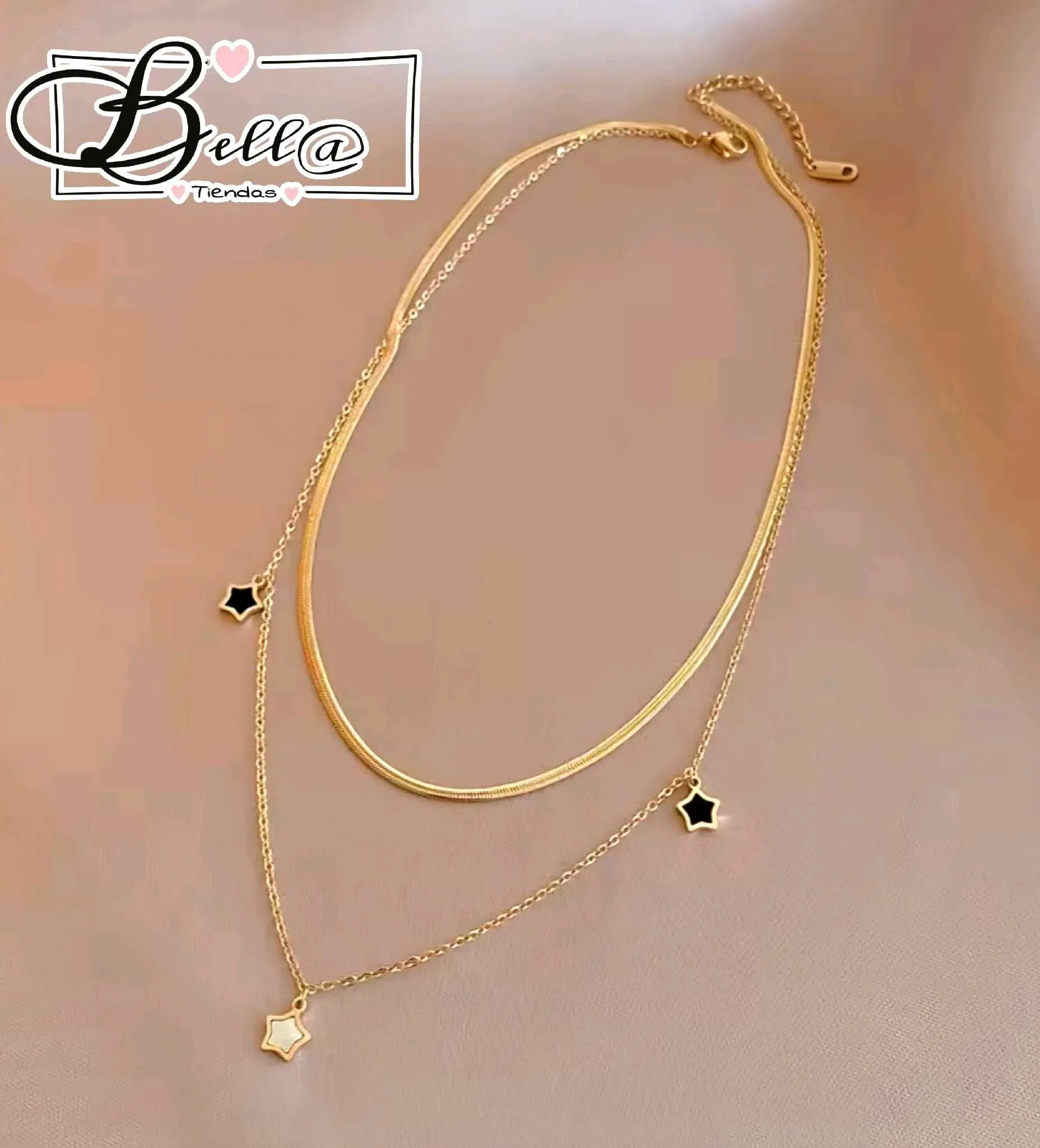 Collar Doble Piel de Serpiente dijes Estrellas ⭐️✨️