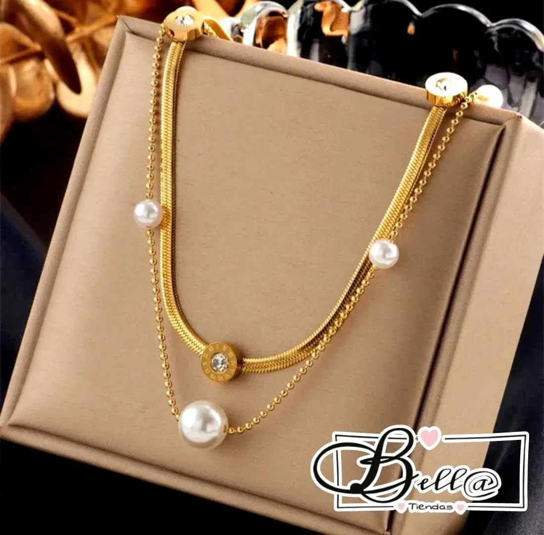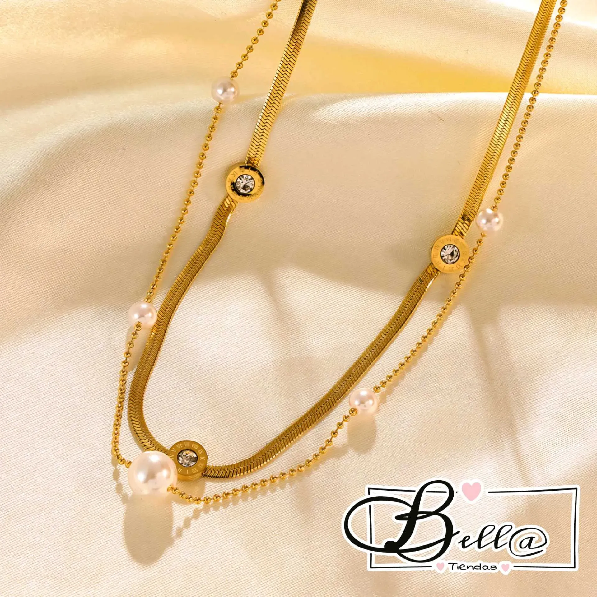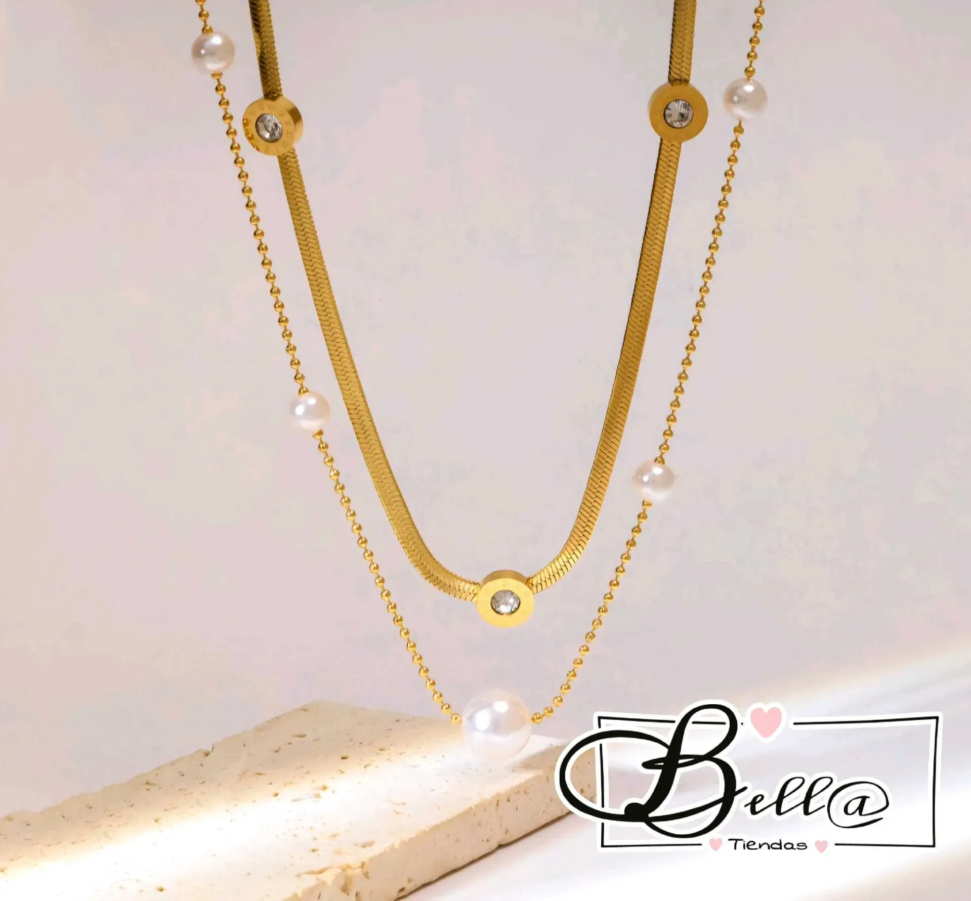 Collar Doble Piel de Serpiente y Perlas ⚪️✨️