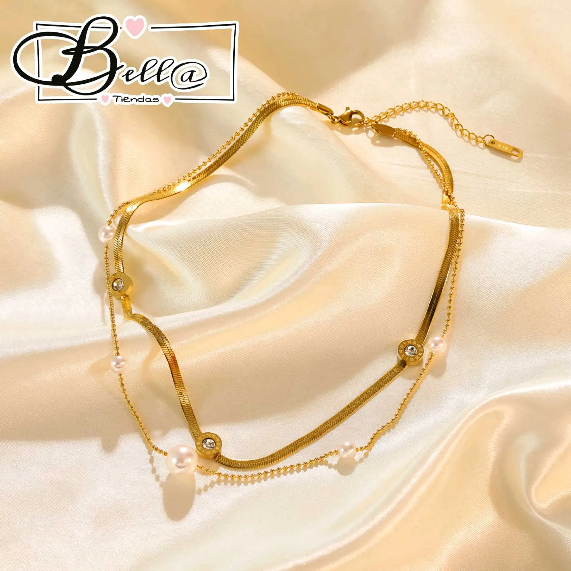 Collar Doble Tejido de Piel de Serpiente y Perlas ⚪️✨️