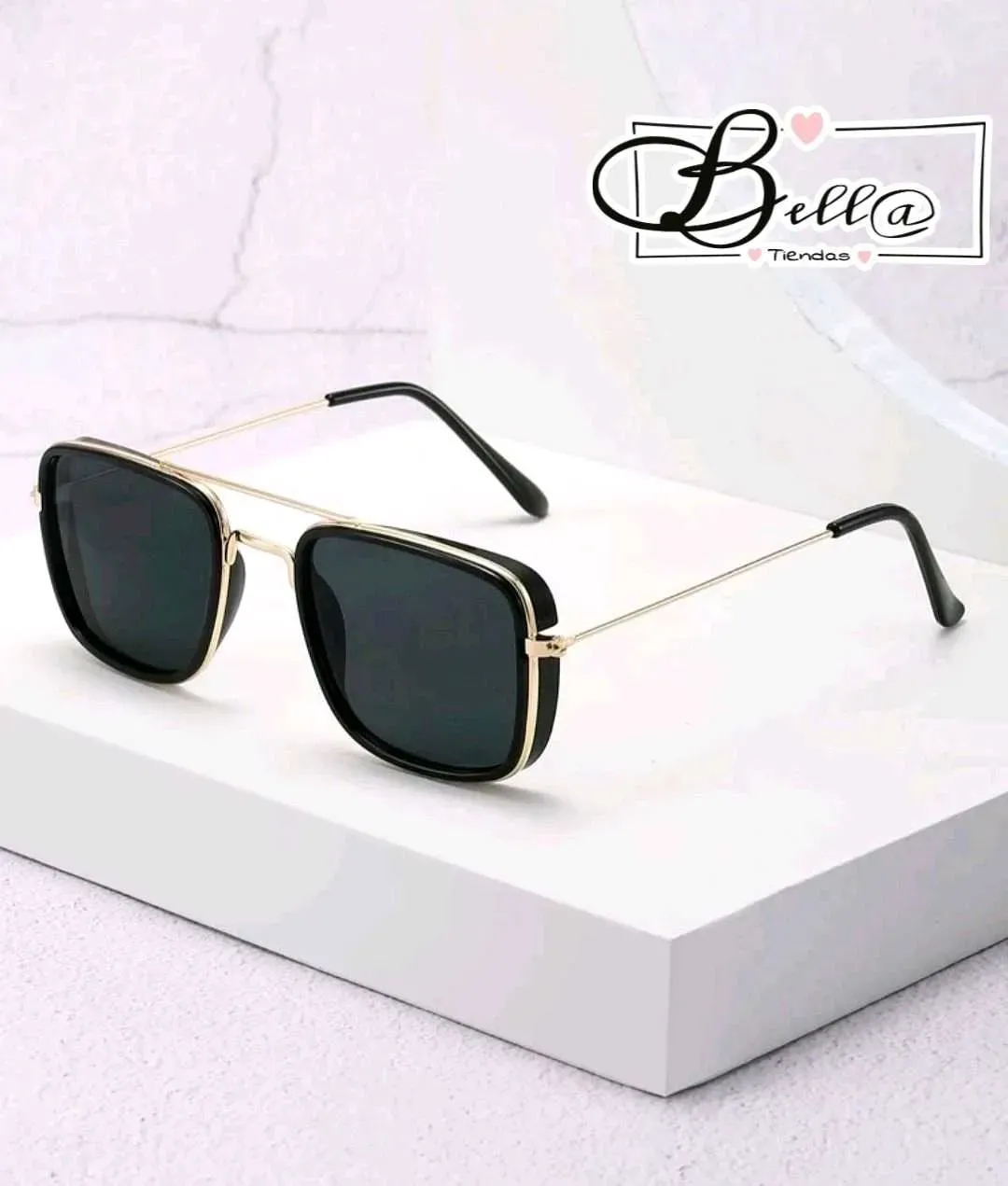 Lentes Montura Gruesa y Detalles Dorados 🖤💛