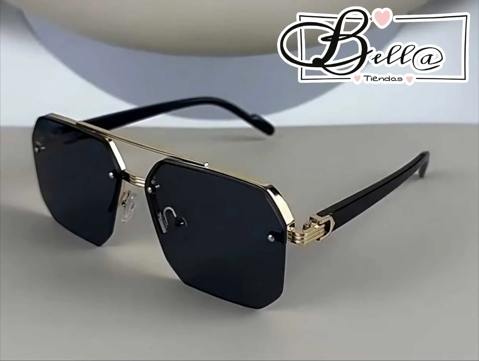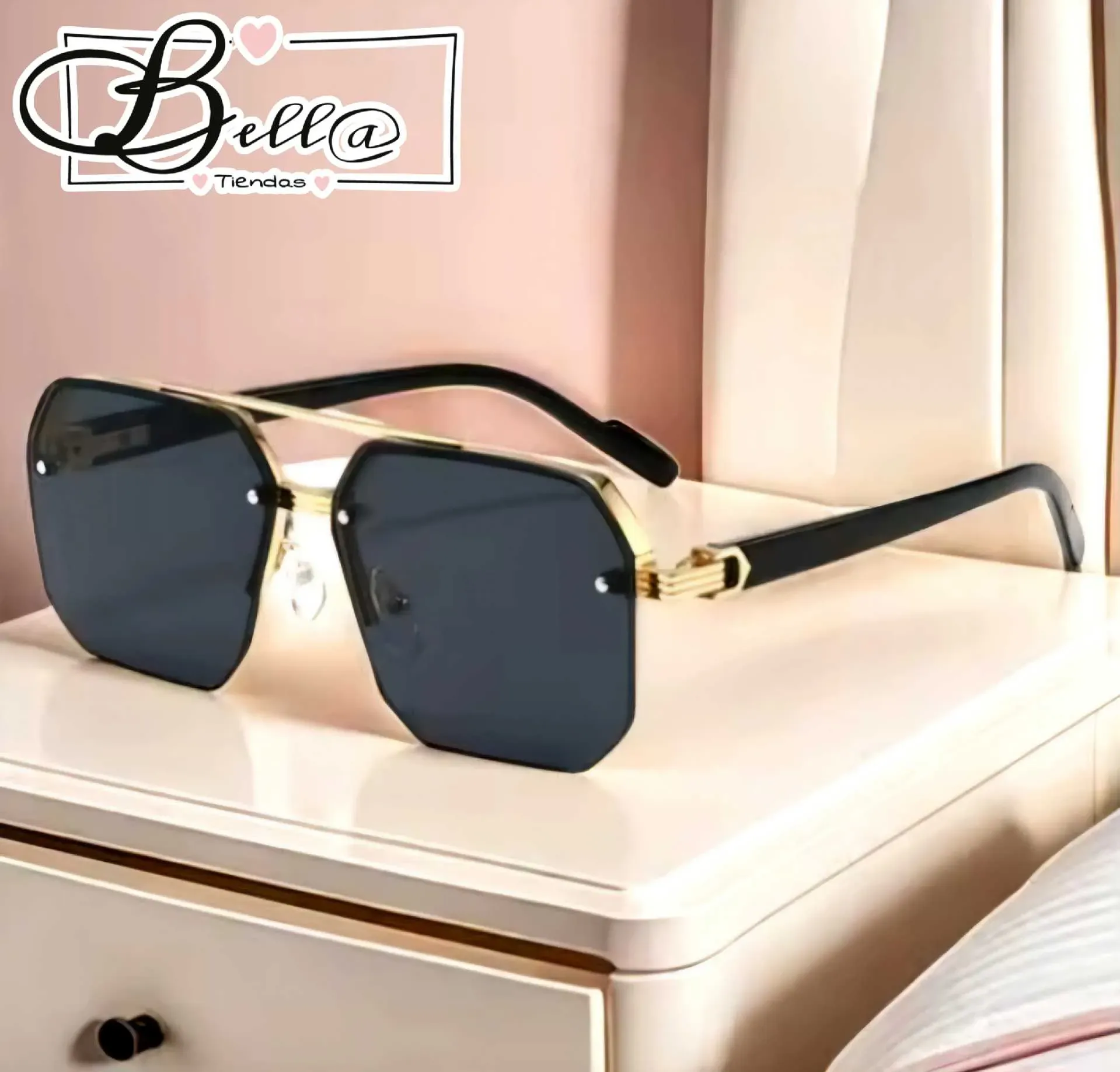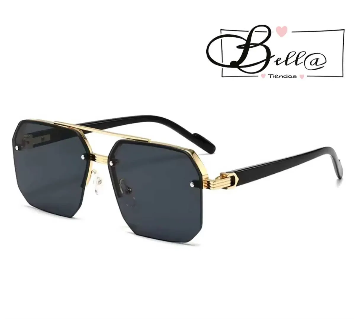 Lentes Unisex SemiAviador Con Detalles Dorados 🖤💛