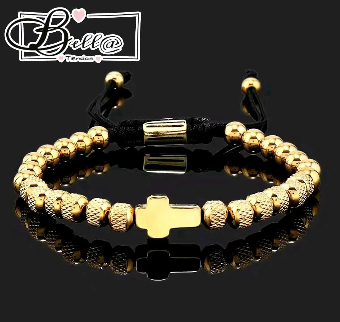 Pulsera de Cuentas Doradas Cruz Dorada ✨️