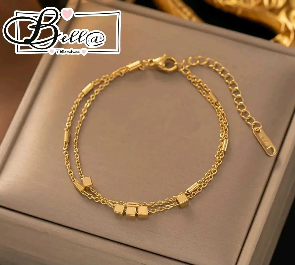 Pulsera doble delicada con Cuadros y plaquitas✨️
