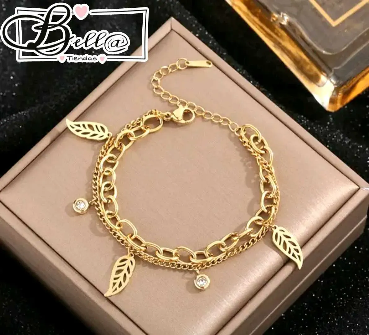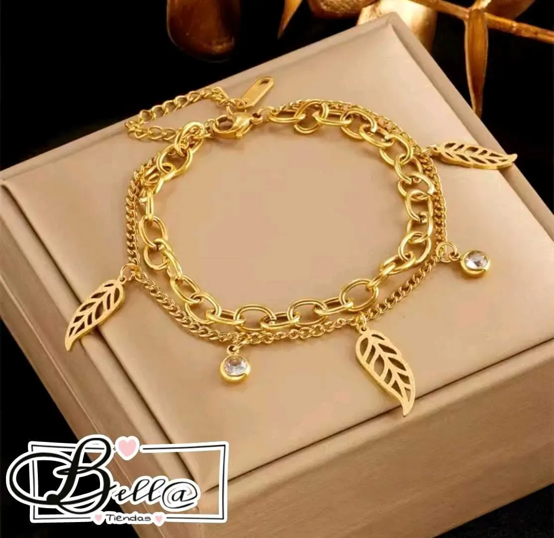 Pulsera Doble dijes de Hojitas 🍃✨️