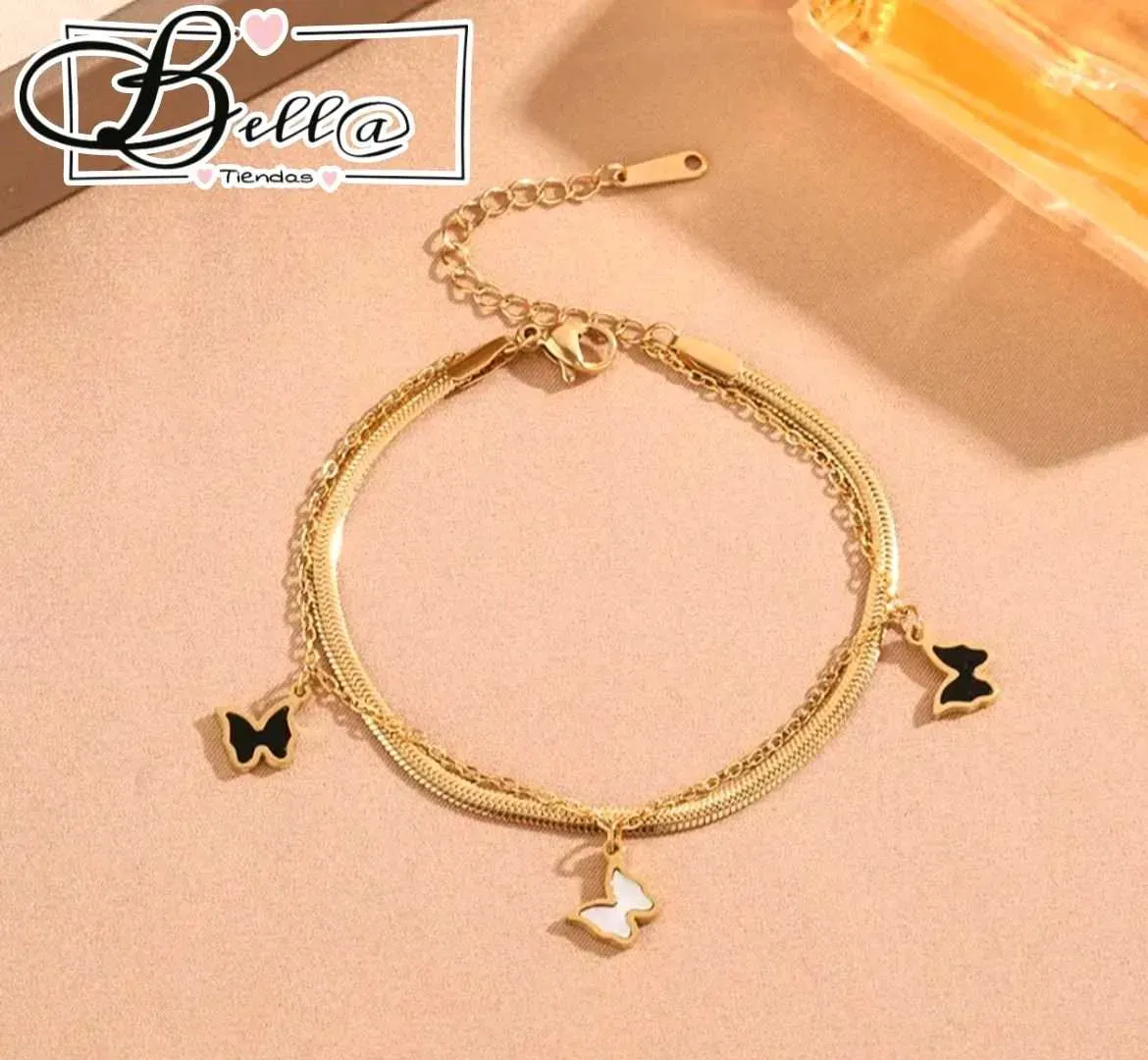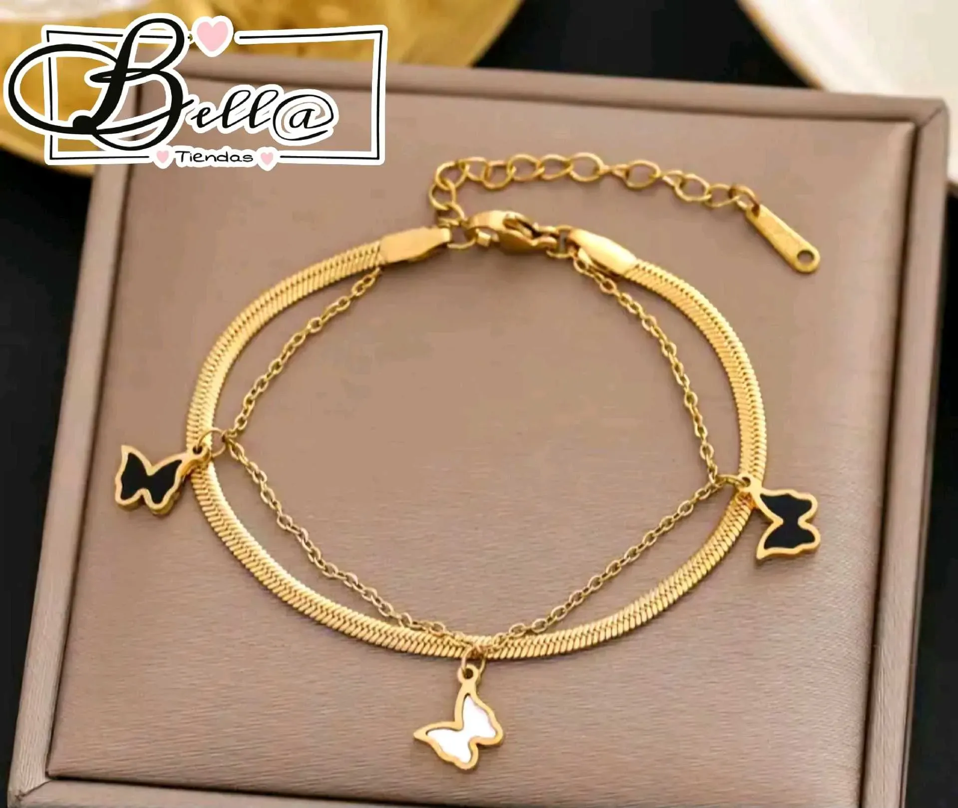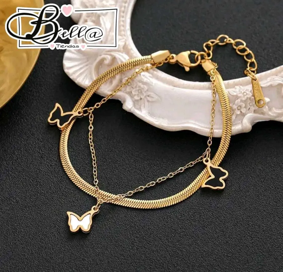 Pulsera Doble Piel de Serpiente dijes Mariposas 🦋✨️
