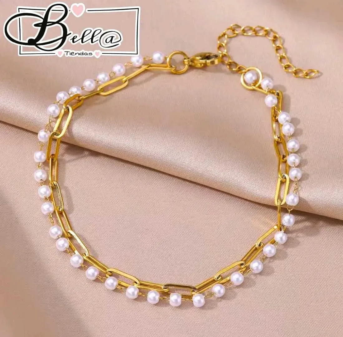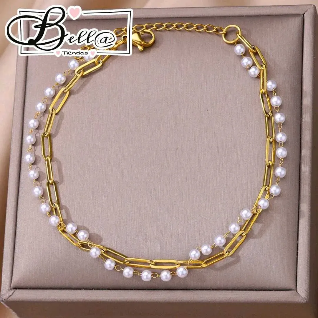 Tobillera Doble Eslabones y Perlas ⚪️✨️