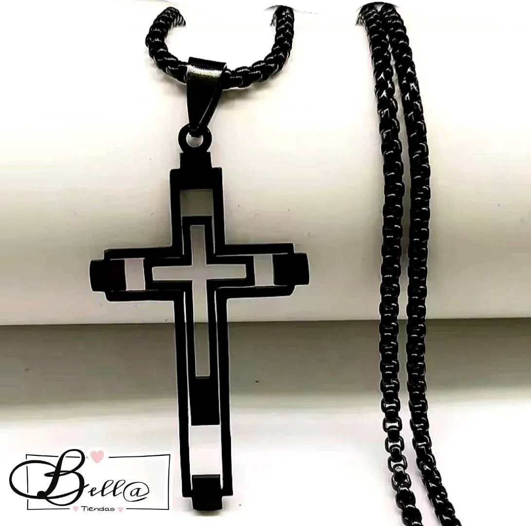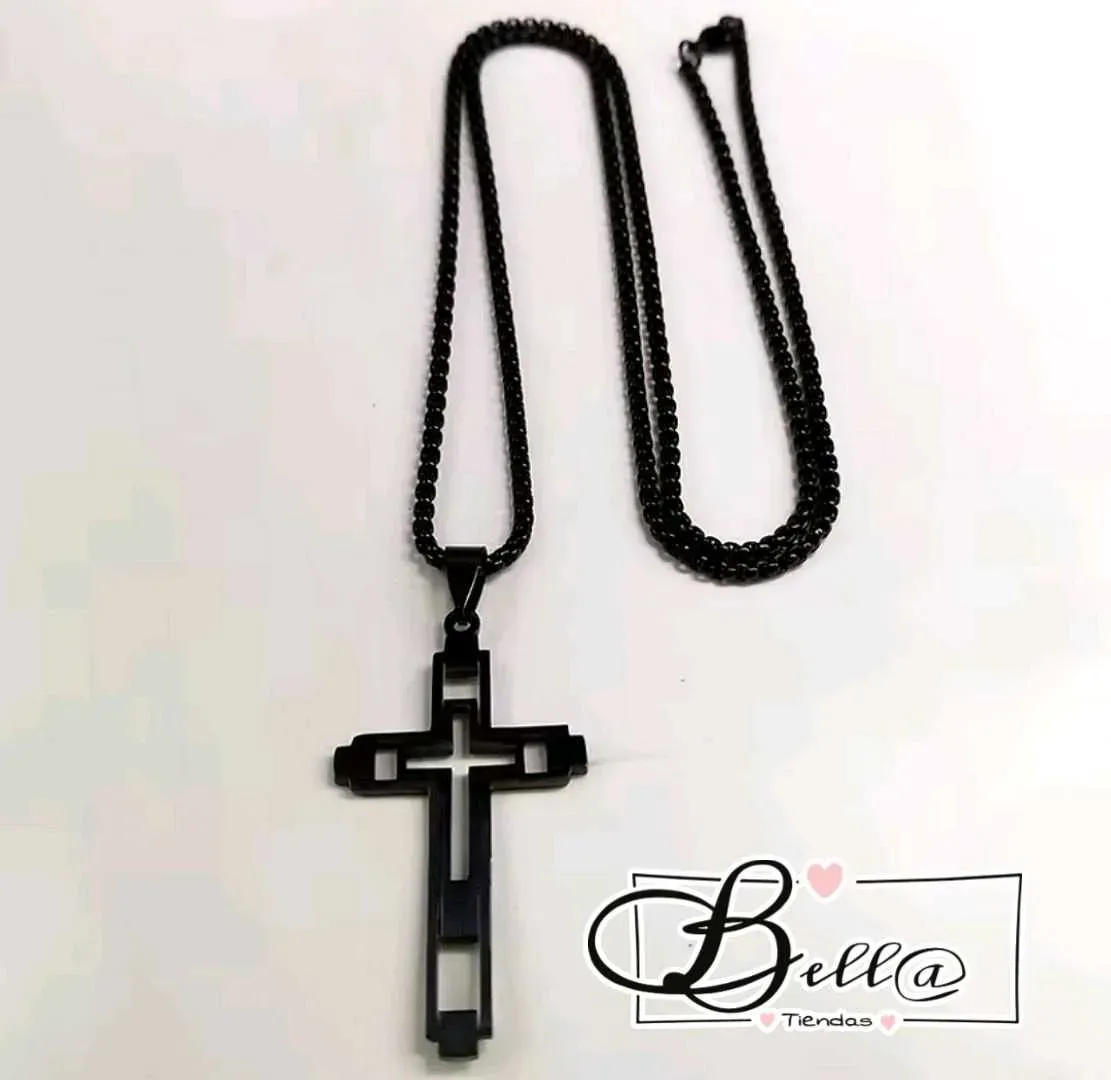 Cadena Negra dije Cruz Moderna 🖤