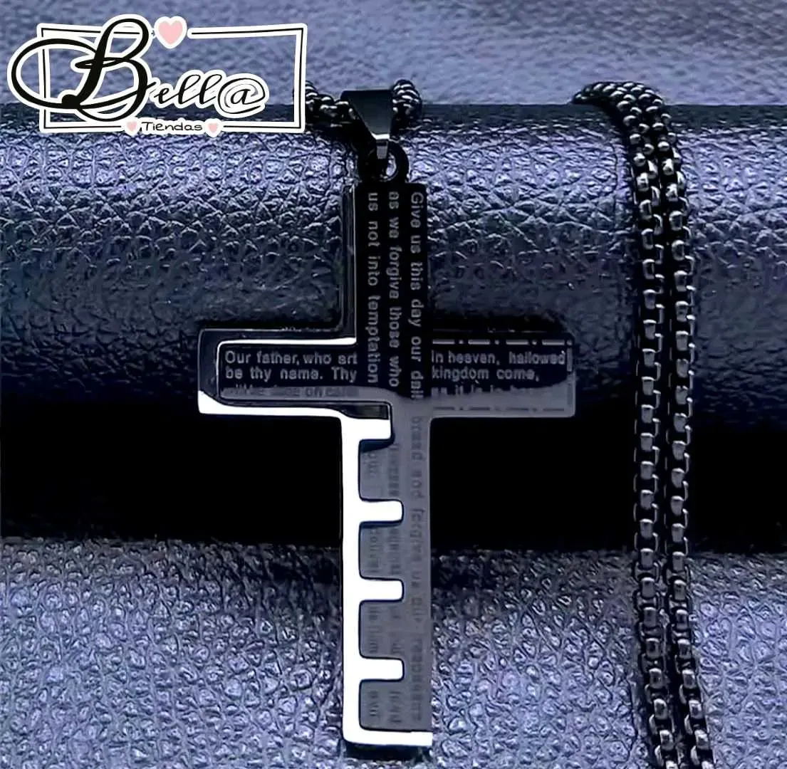 Cadena Negra con dije de Cruz Negra con Plateada 🖤🩶