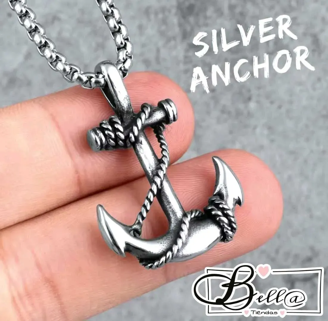 Cadena Plateada dije Ancla Efecto Envejecido 🩶🖤