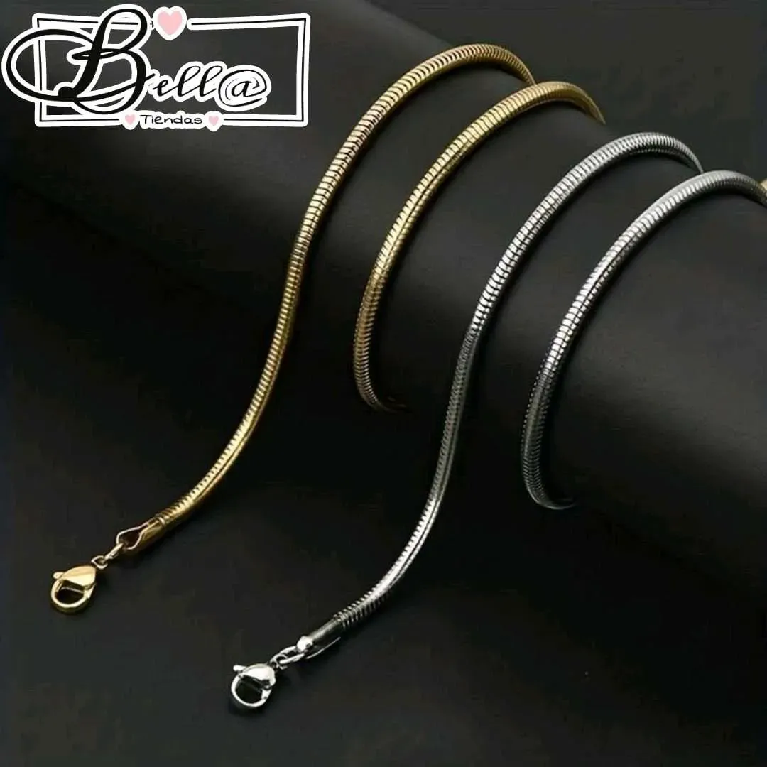 Cadena Plateada Piel de Serpiente Redonda 🩶