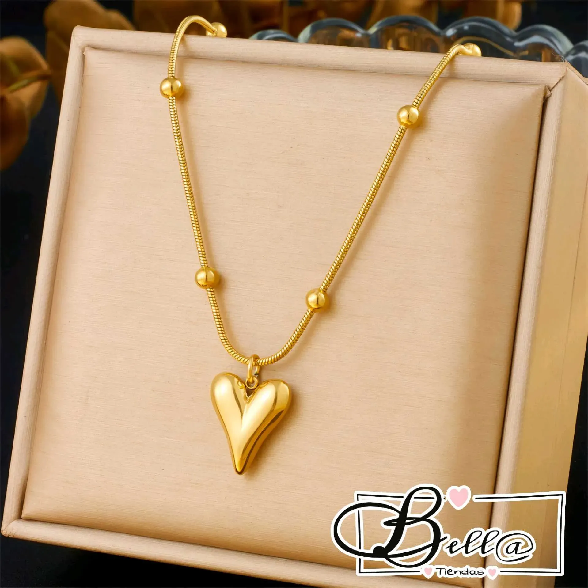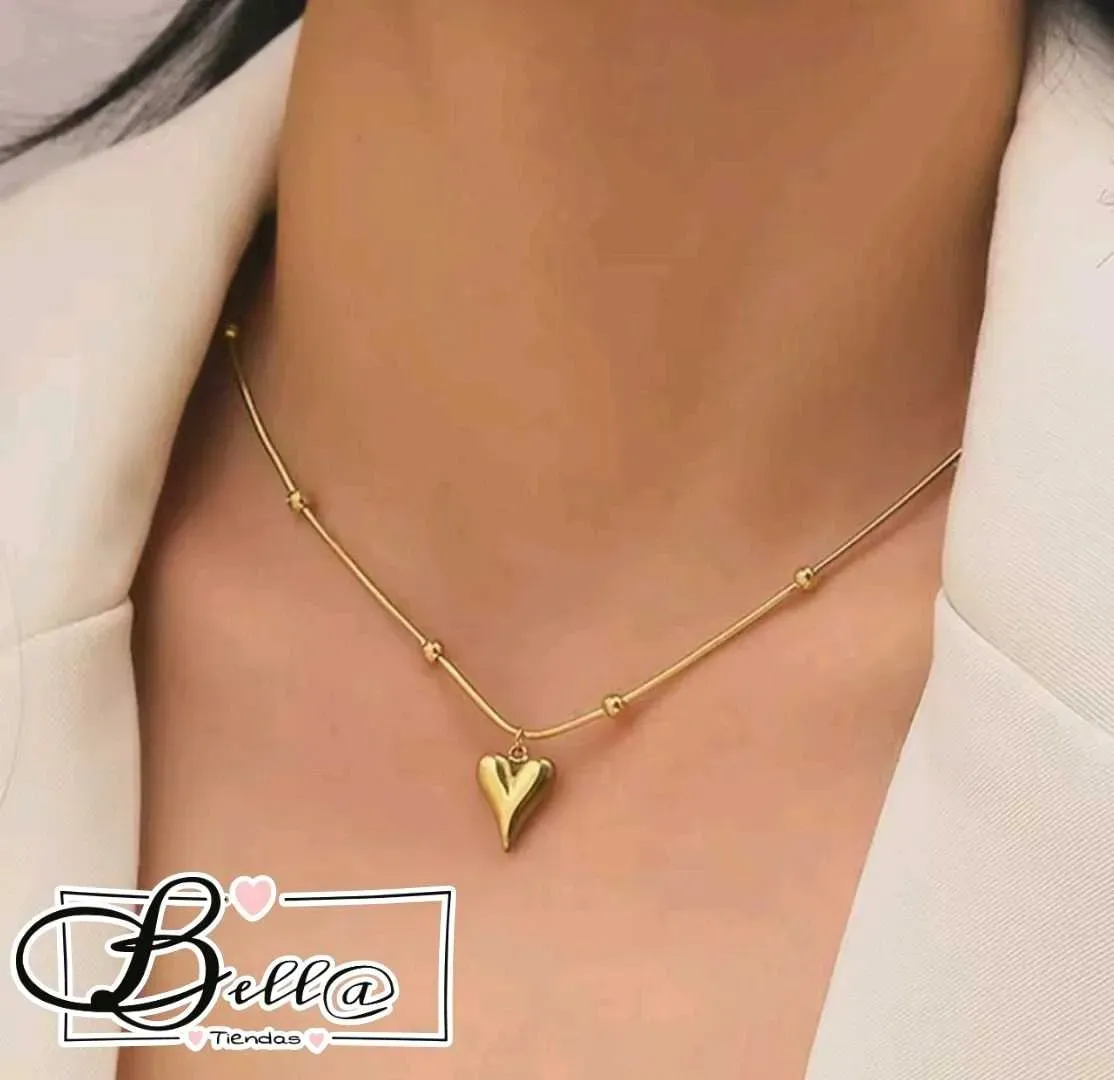 Collar de Balines Dije Corazón Alargado 💛✨️
