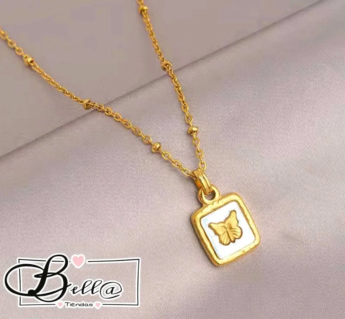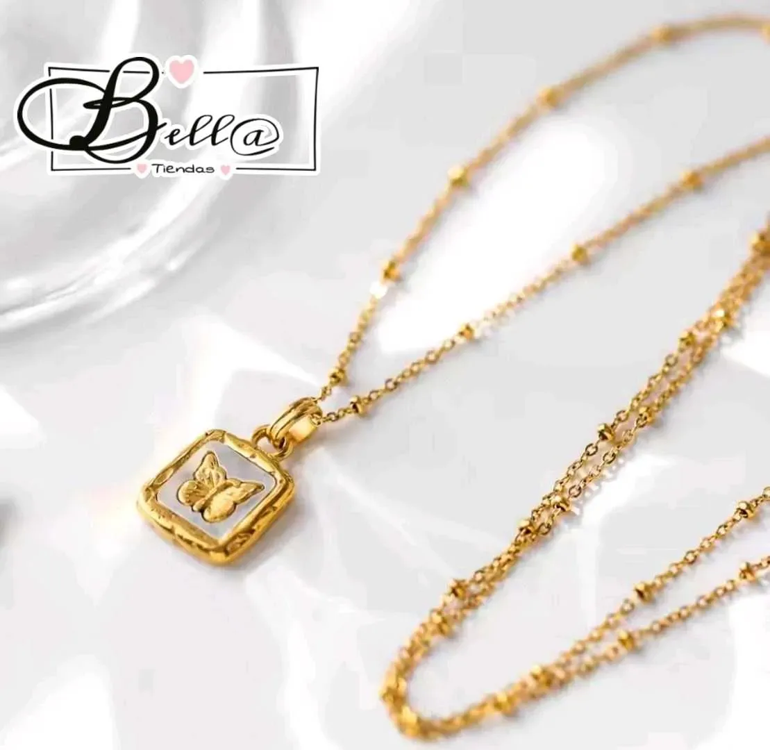 Collar de Balines dije Placa con Nacar y Mariposa 🦋
