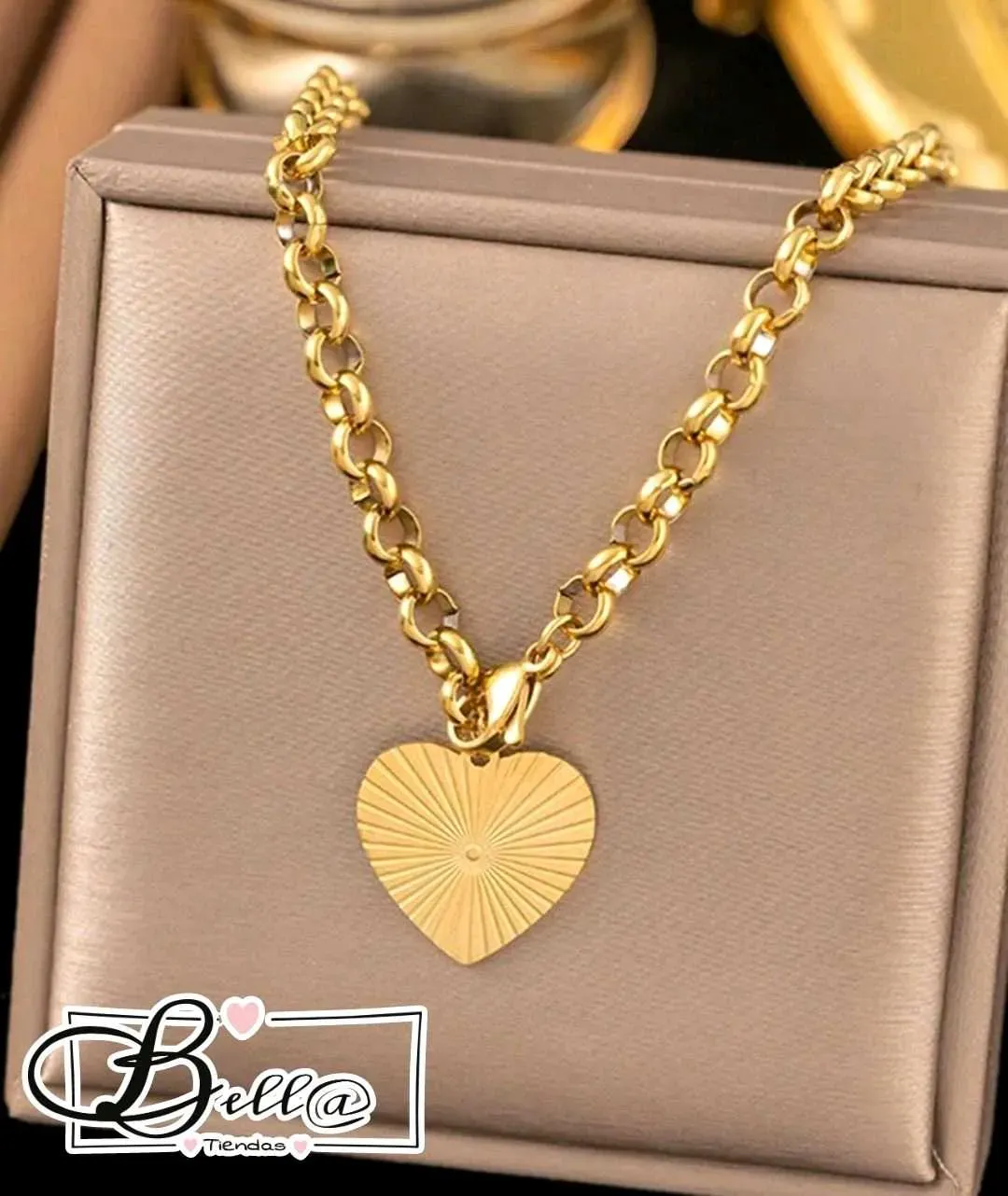 Collar con Cierre Frontal y Placa de Corazón 💛✨️