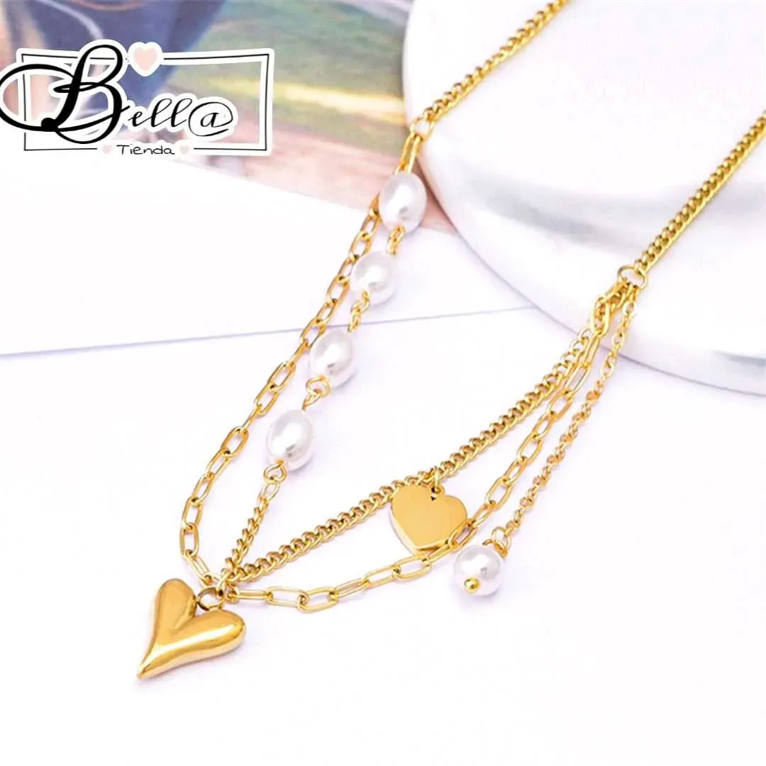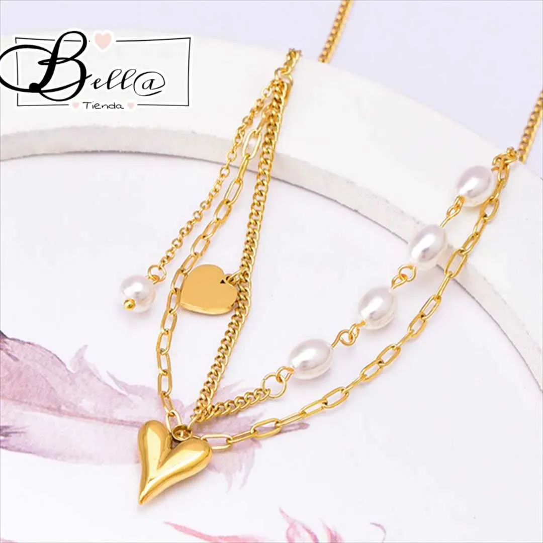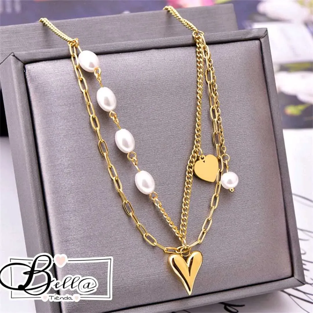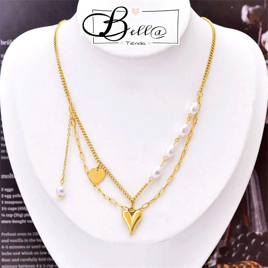 Collar Corazón Alargado con Perlas 💛⚪️✨️