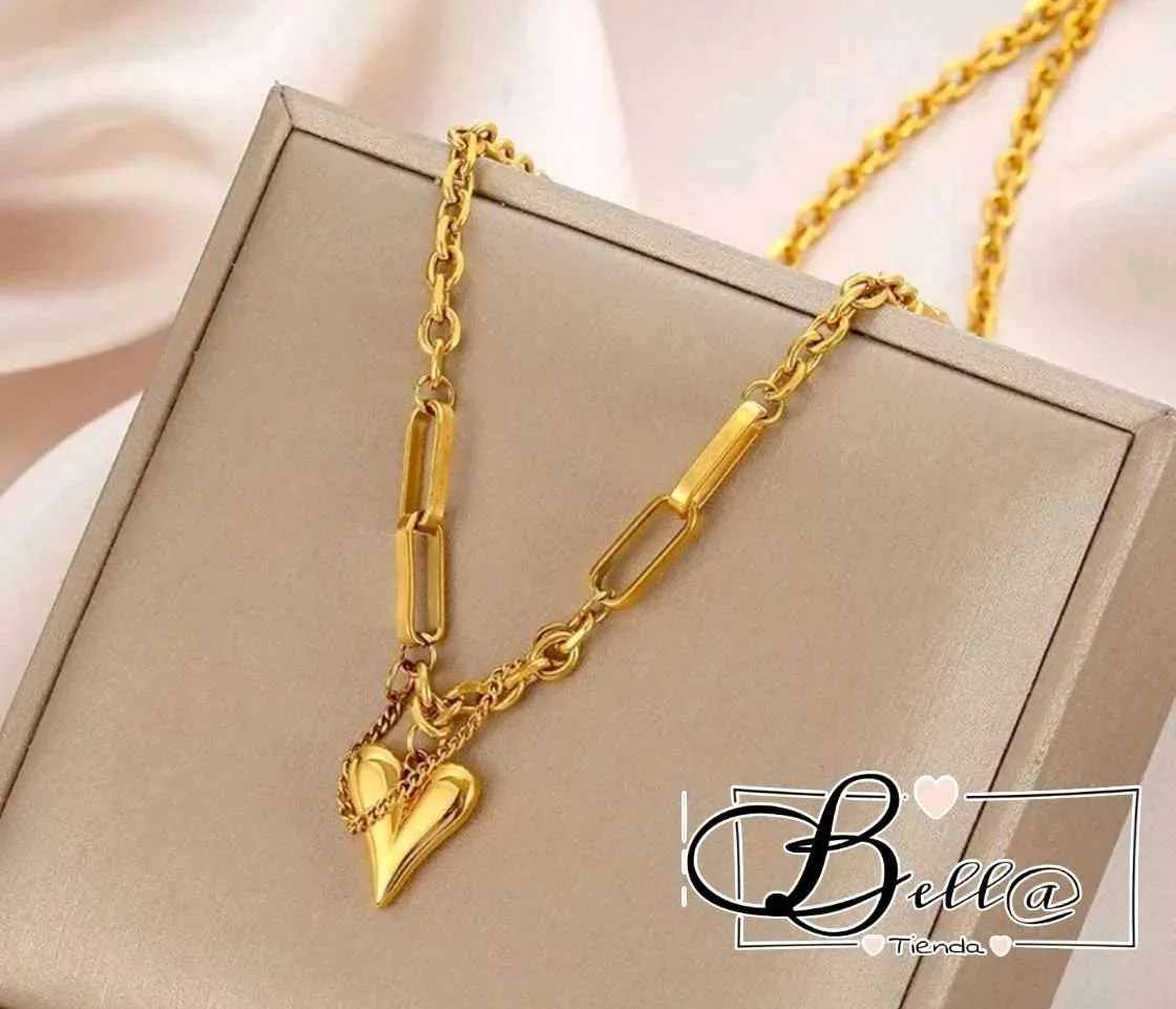 Collar con 3 tipos de Tejido y Corazón Chunky Alargado ✨️