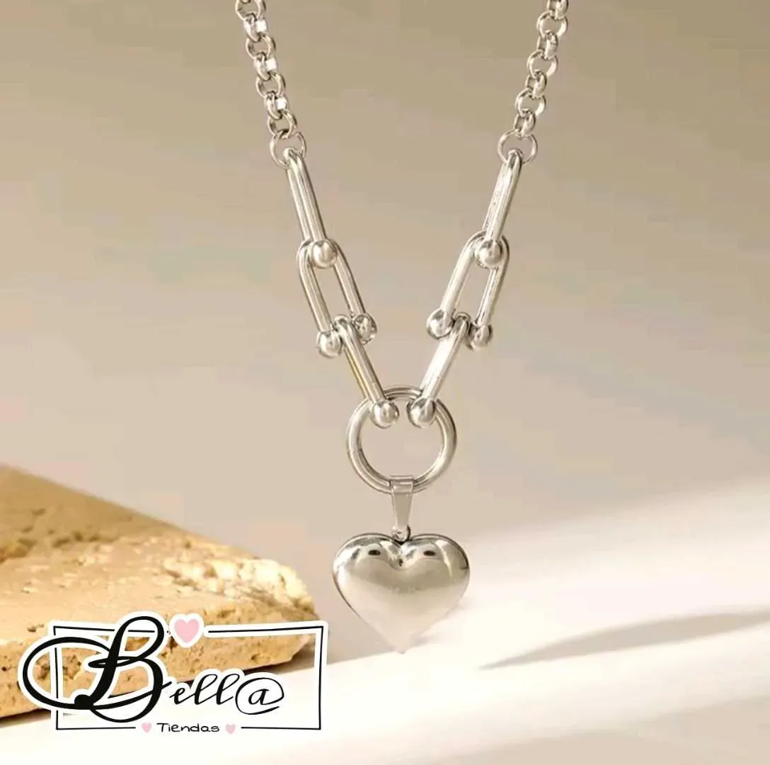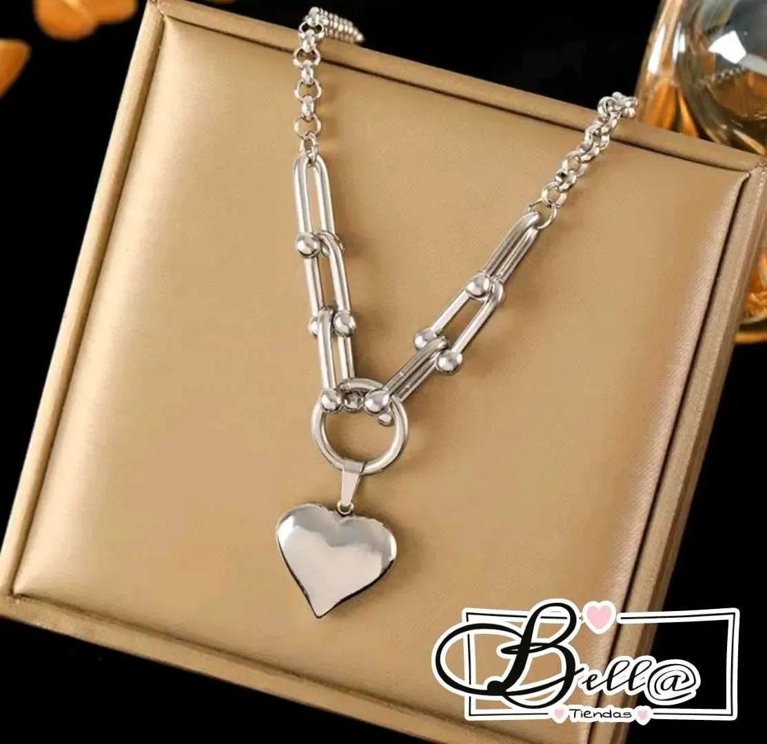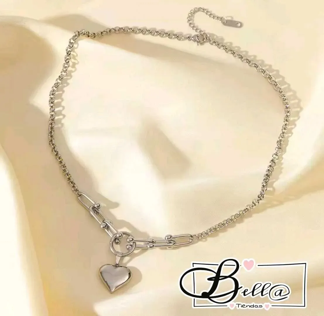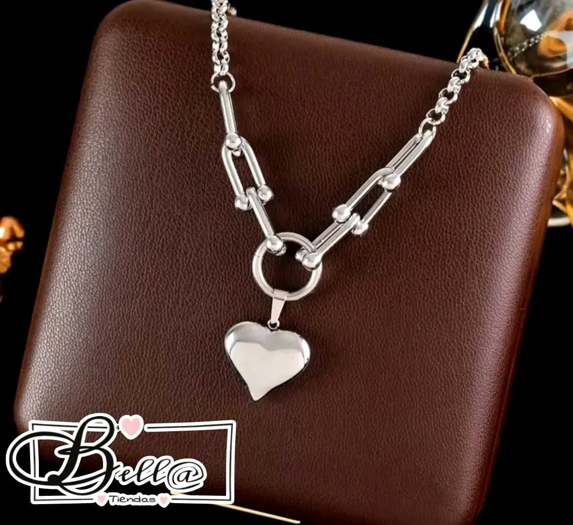 Collar de Corazón y Eslabones Plateado🩶✨️