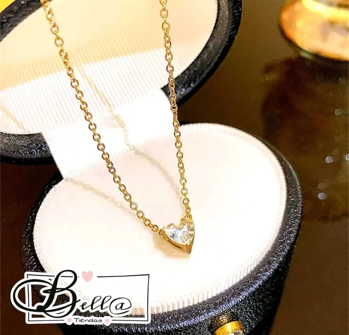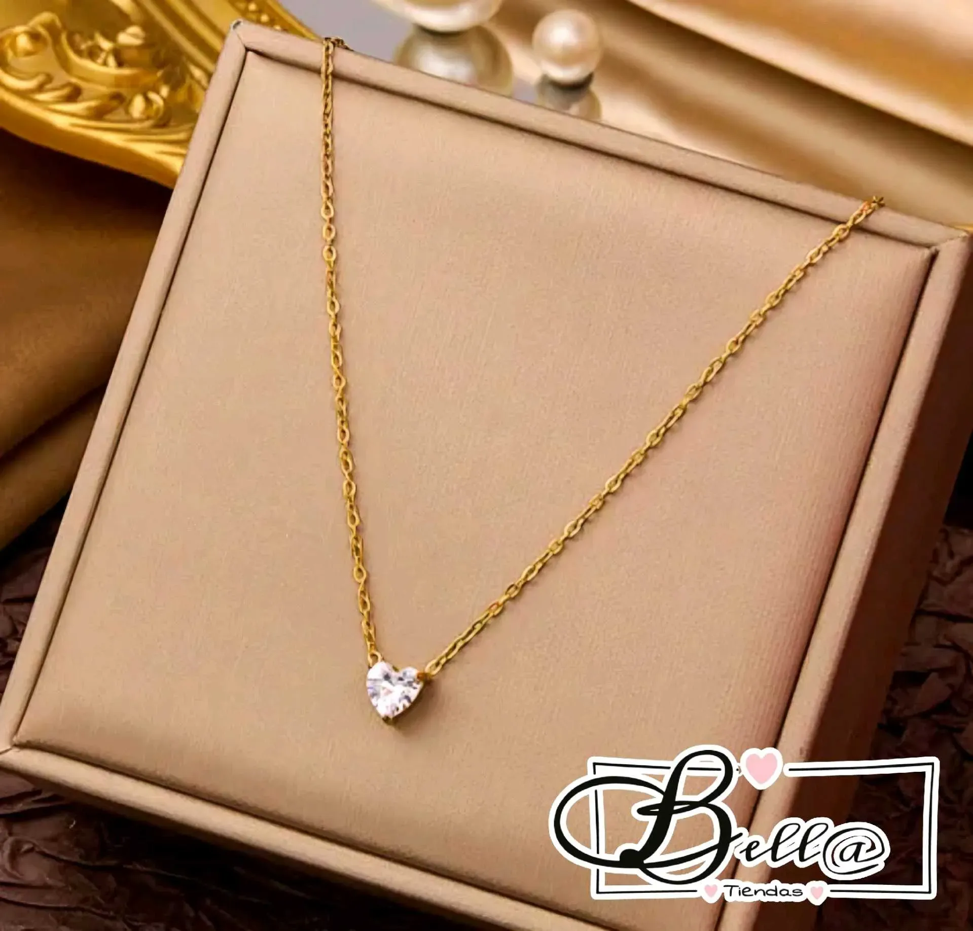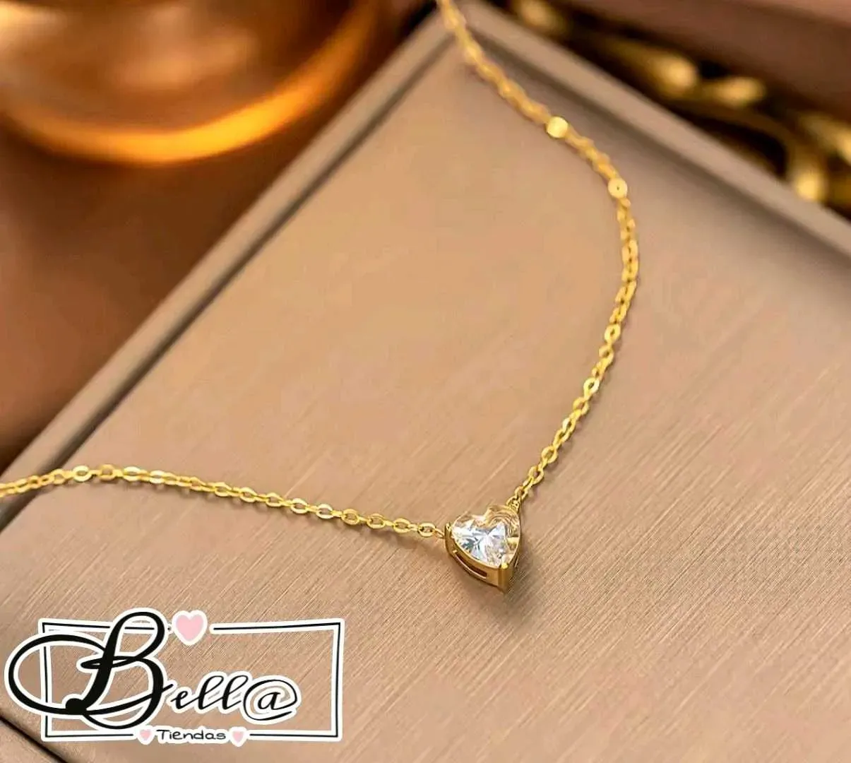 Collar Delicado con dije de Cristal en forma de Corazón 💛💎