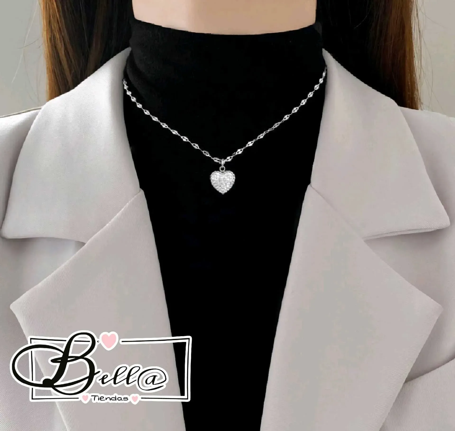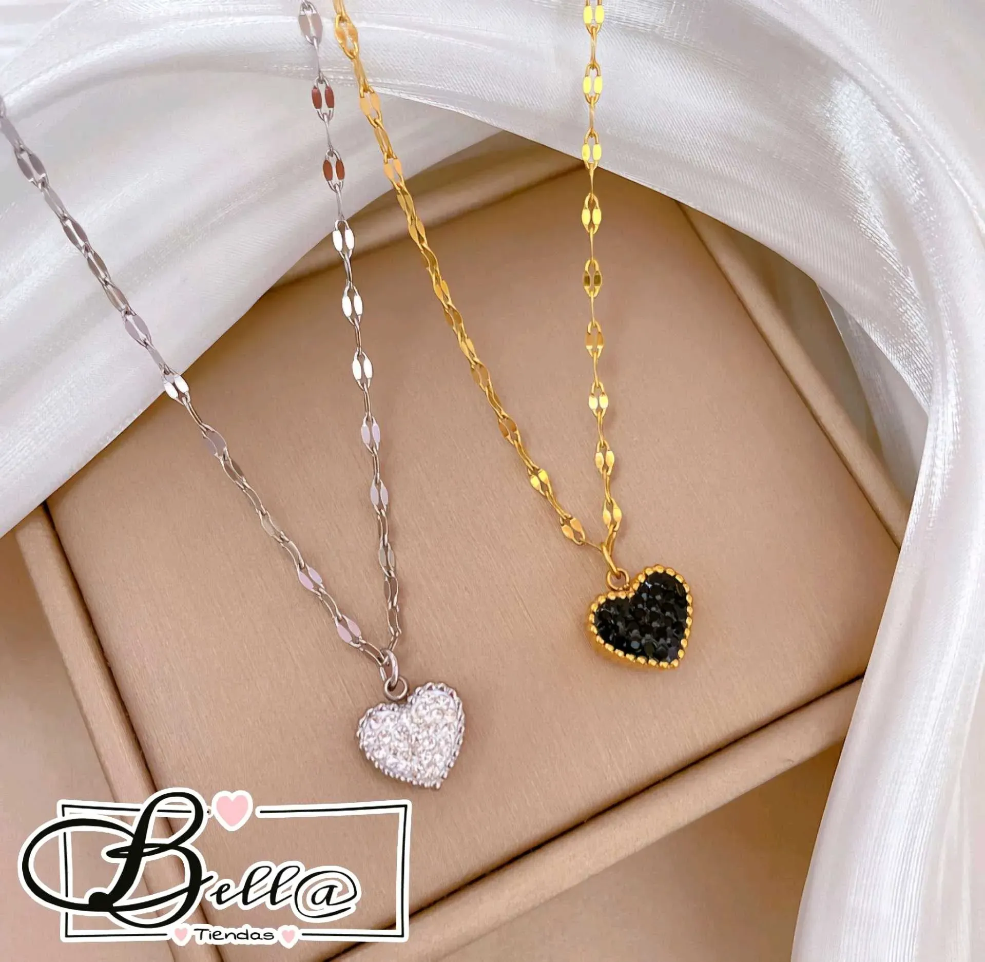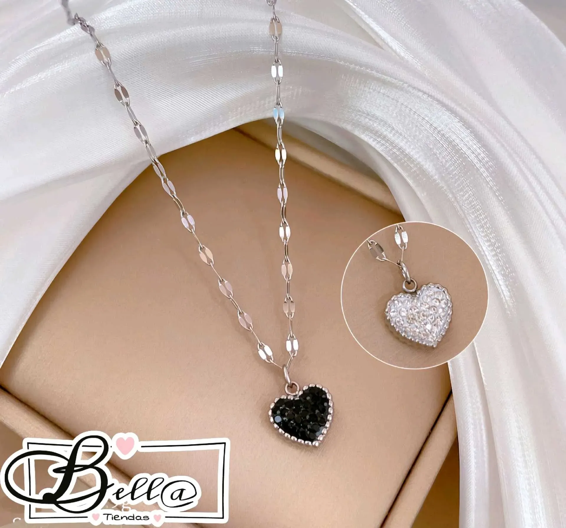 Collar dije de Corazón con Pedrería Reversible 🤍🖤✨️