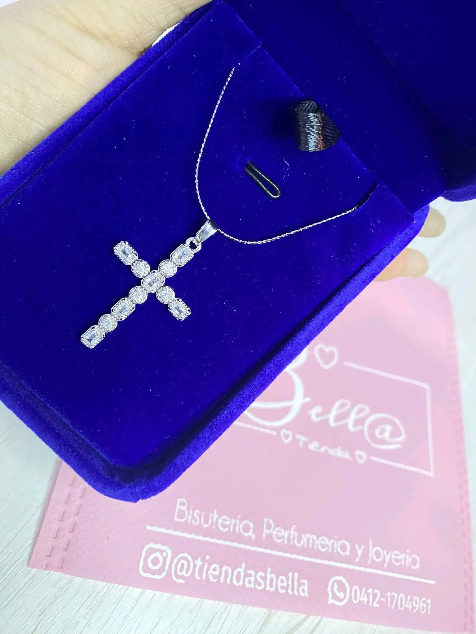 Collar dije Cruz Plateada con Pedrería 🩶✝️💎