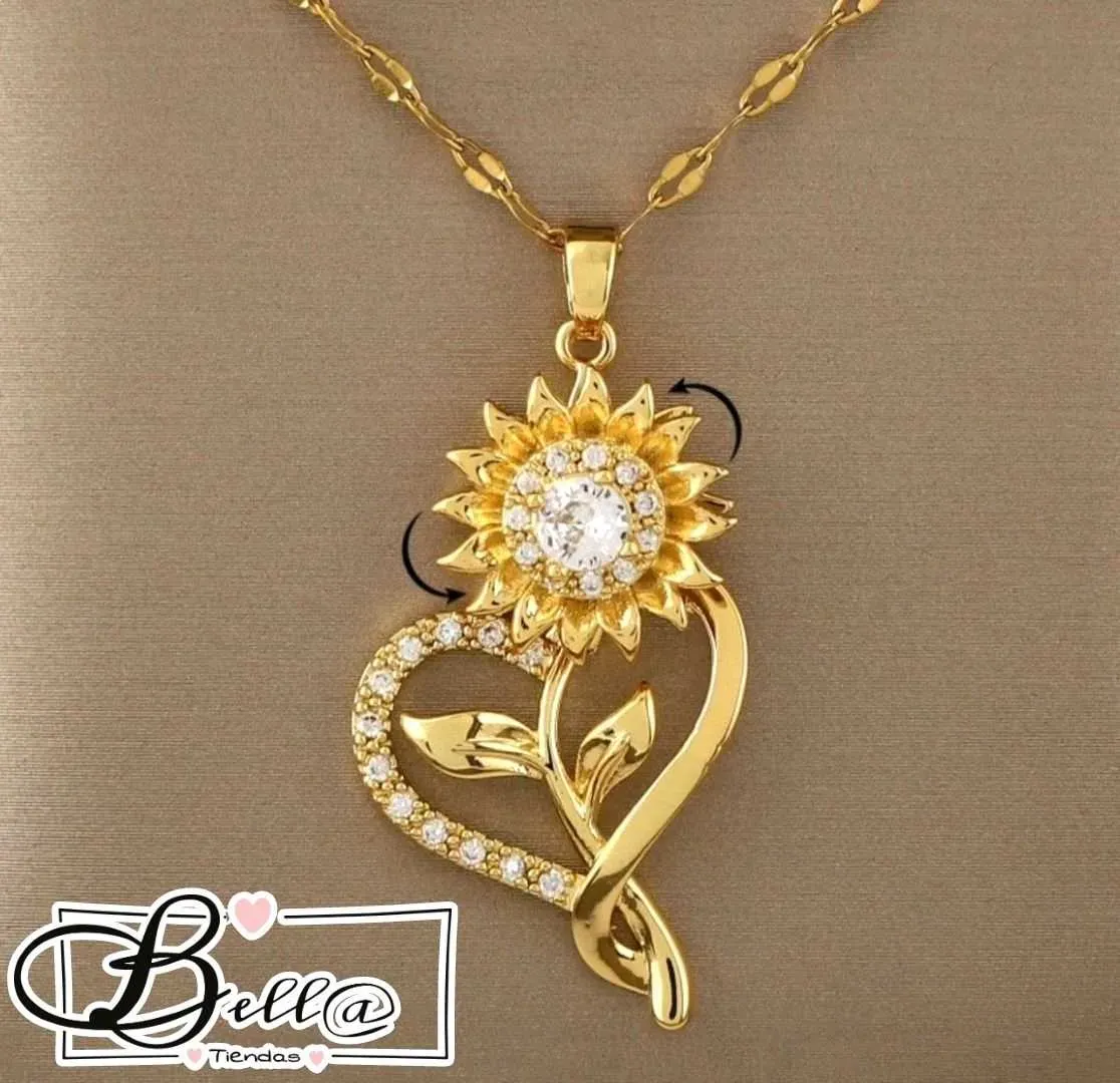 Collar dije Girasol y Corazón Anti-estrés 🌻💛