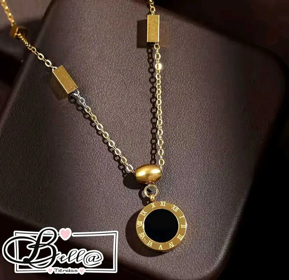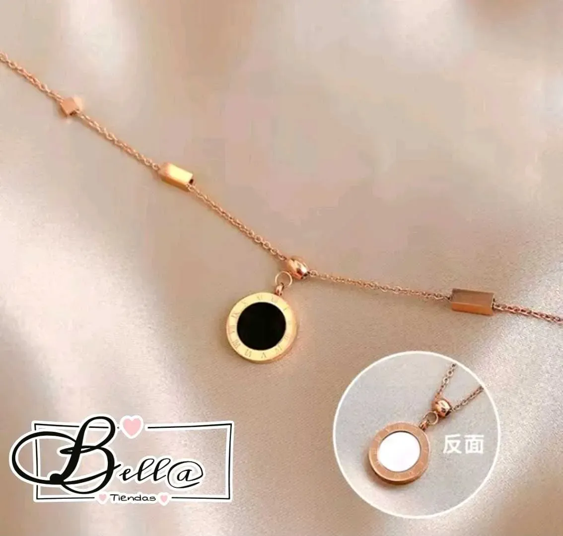 Collar con dije tipo Bvlgari Reversible ⚪️⚫️✨️