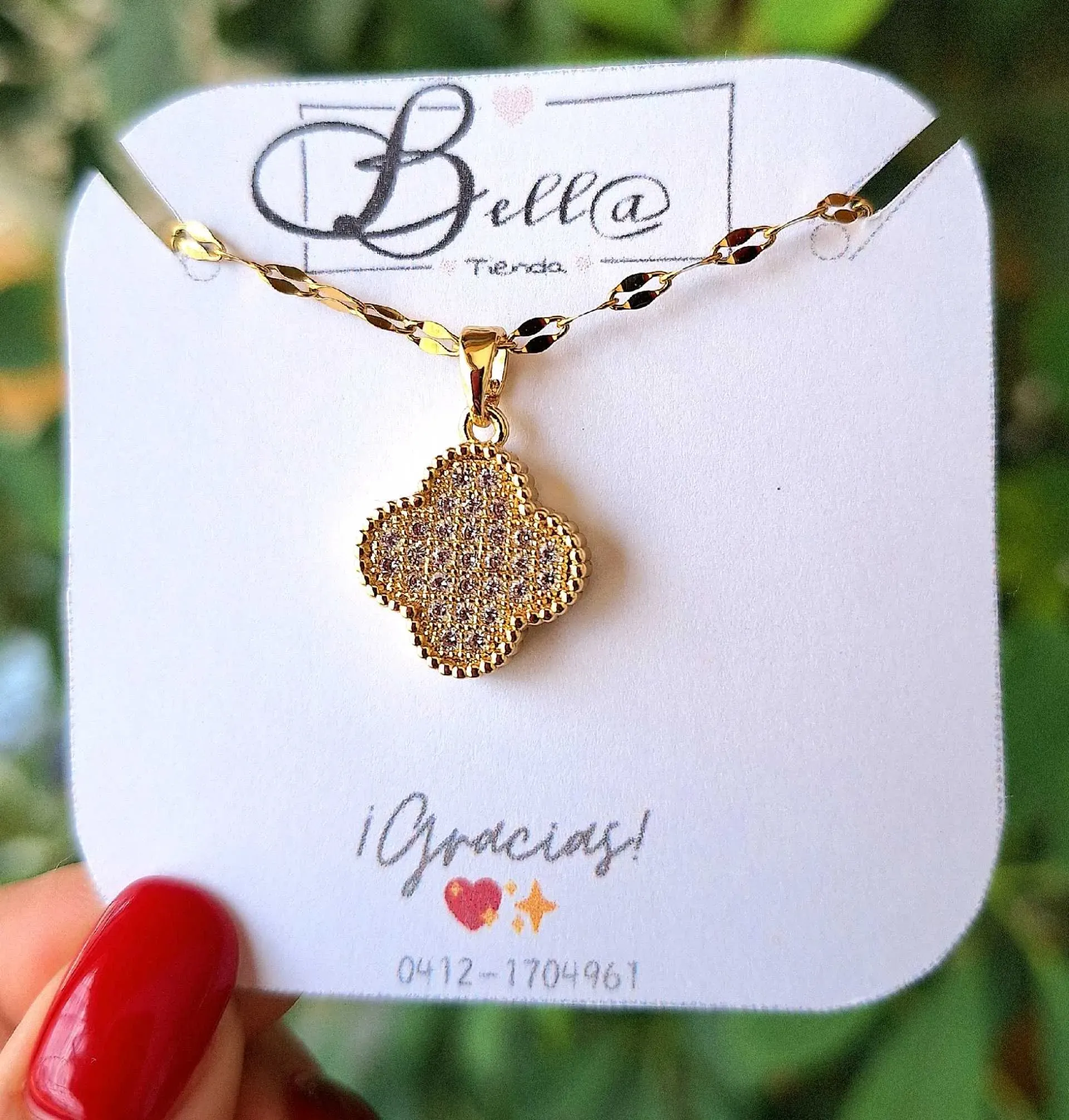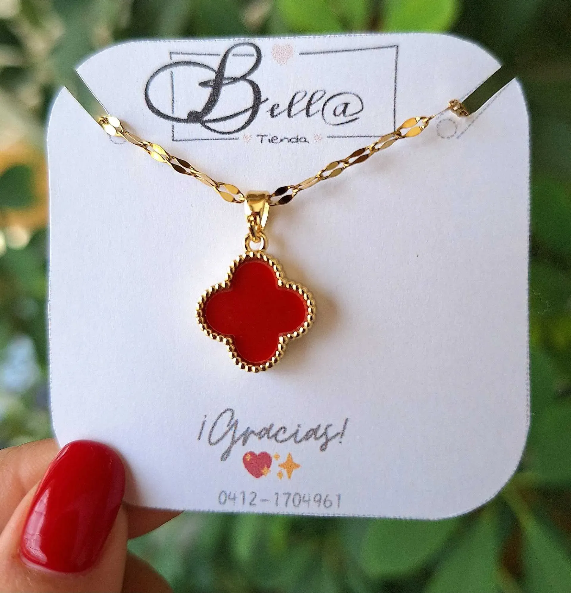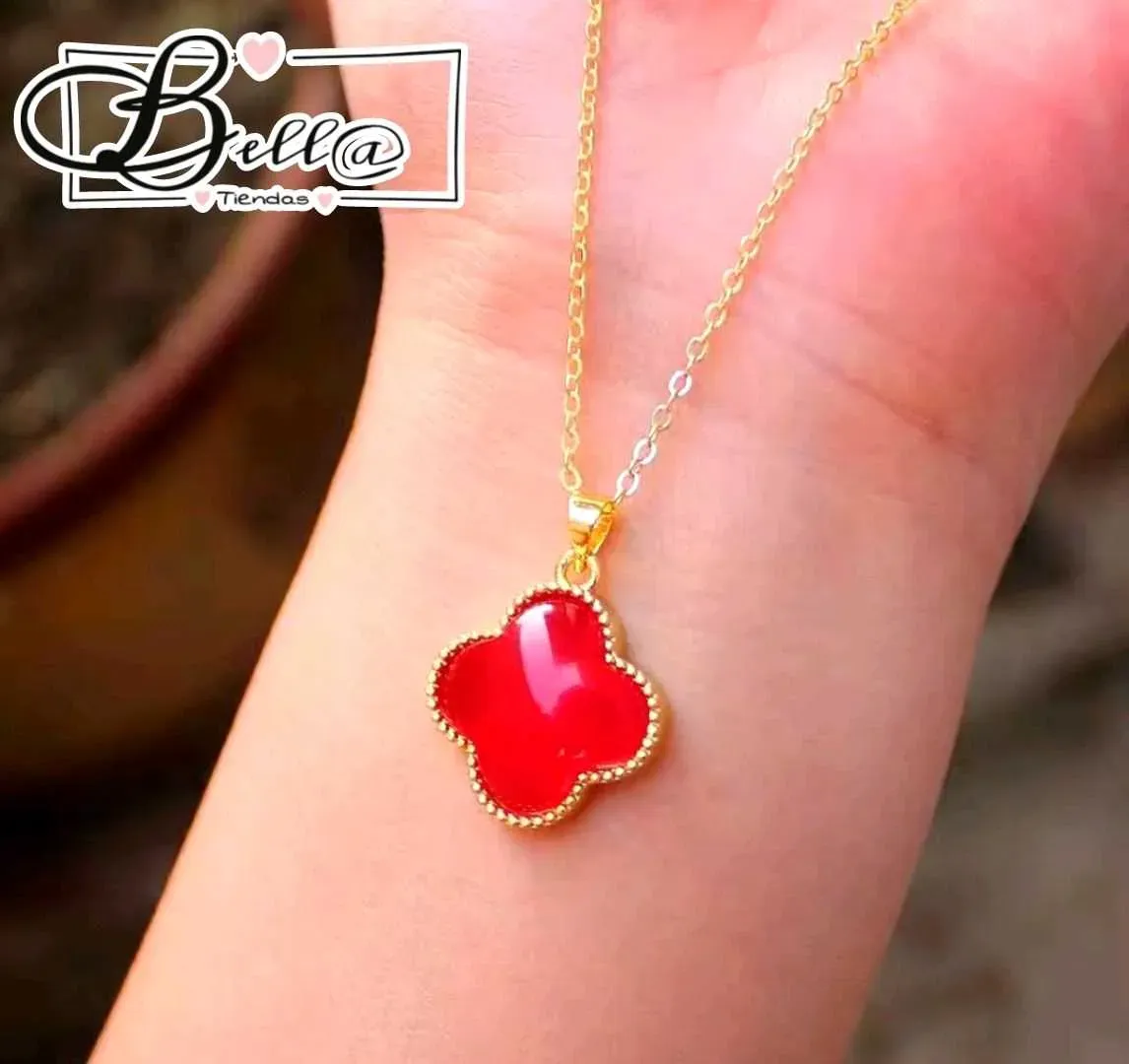 Collar con dije tipo Van Cleef Reversible en Rojo y Pedrería ❣️💛💎