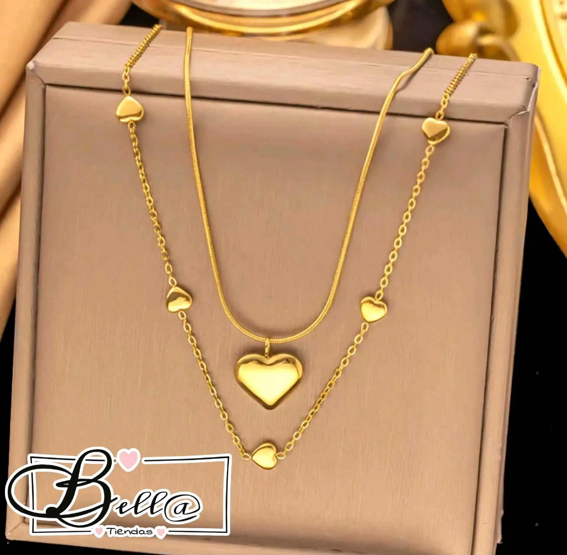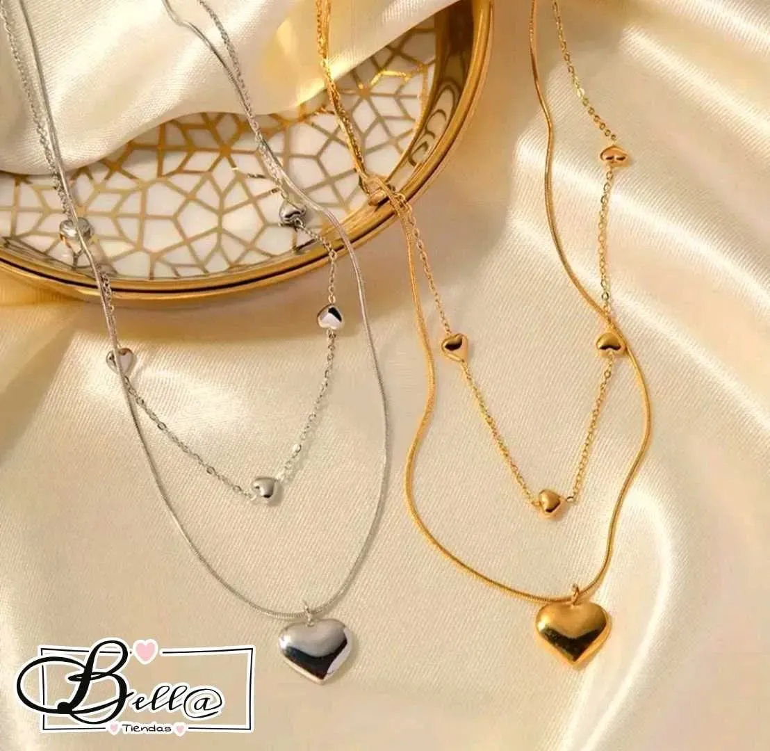 Collar Doble de Corazones 💛✨️