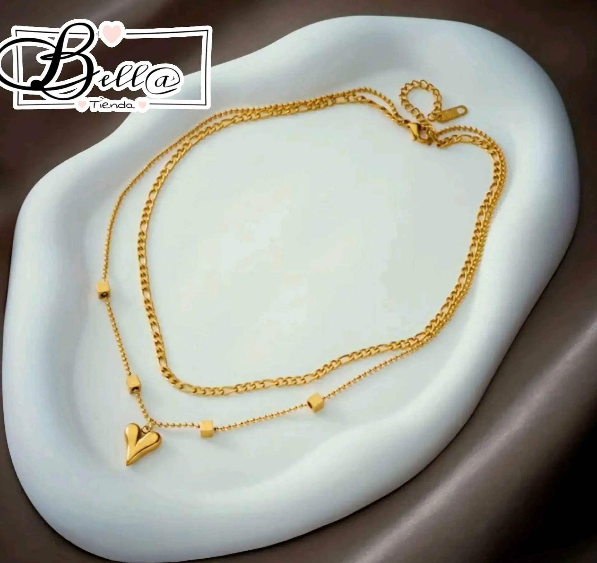 Collar Doble dije Corazón Alargado 💛✨️