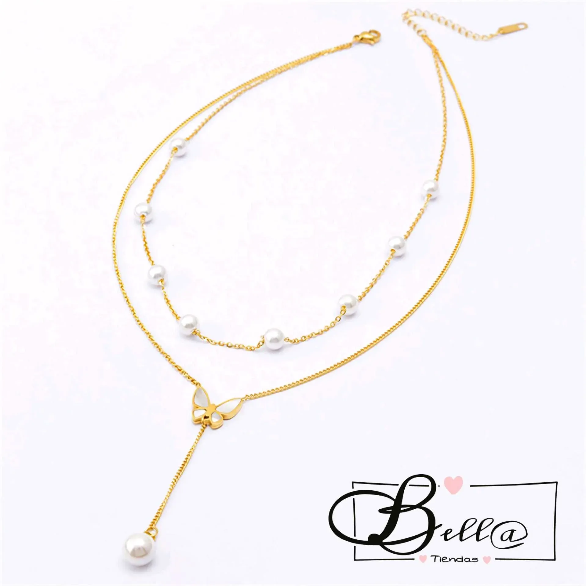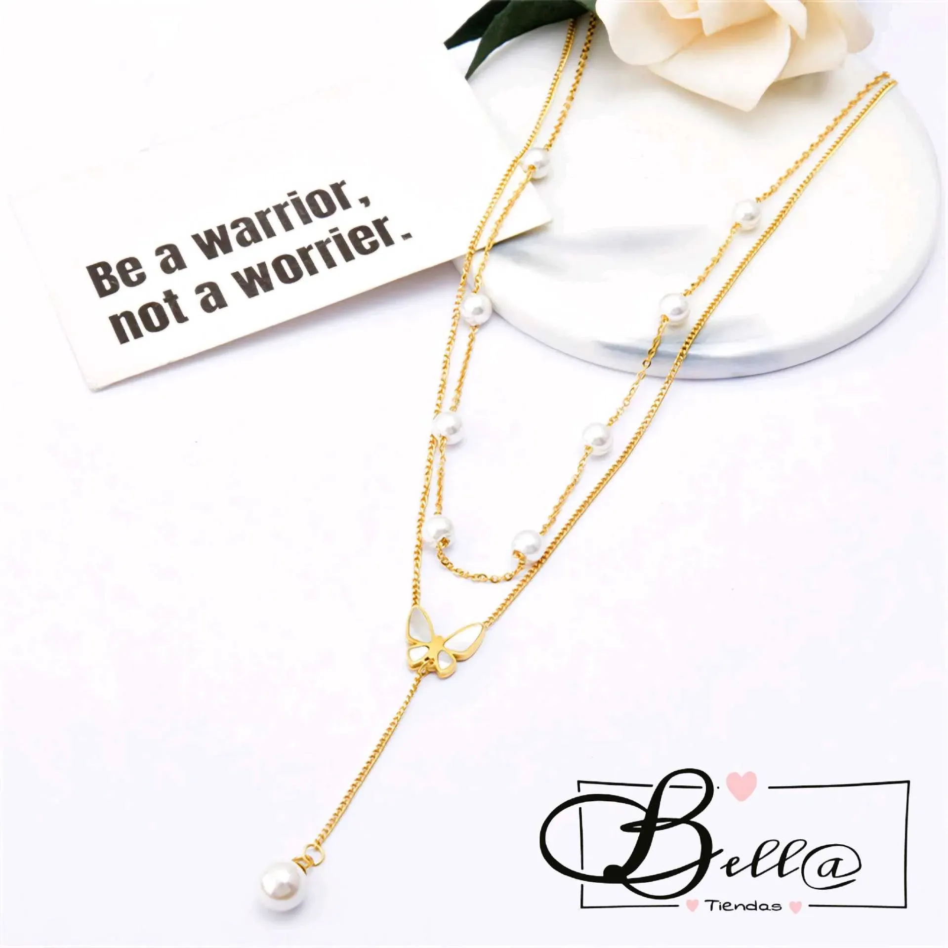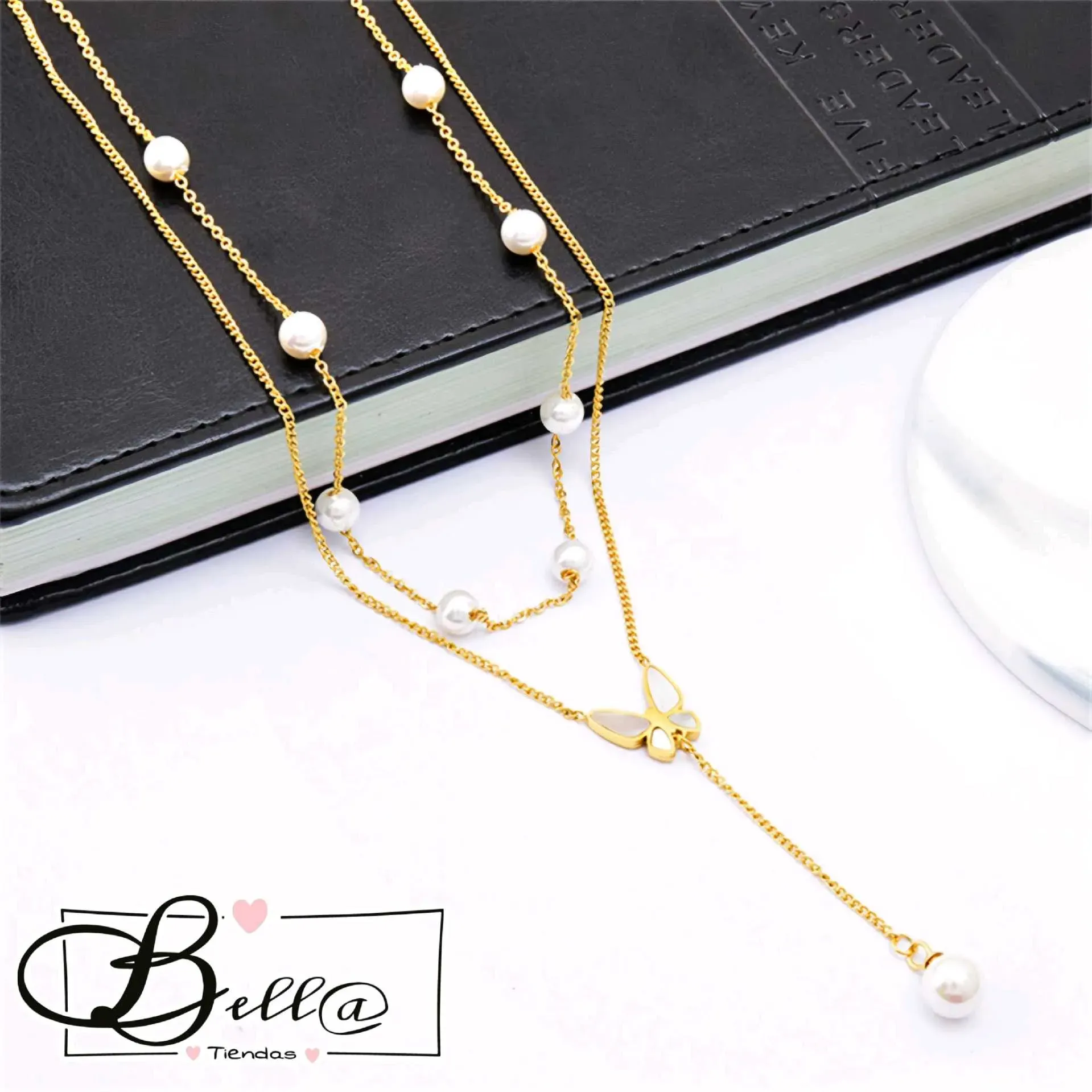 Collar Doble dije Mariposa y Perlas 🦋⚪️✨️