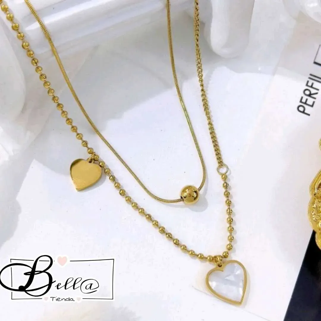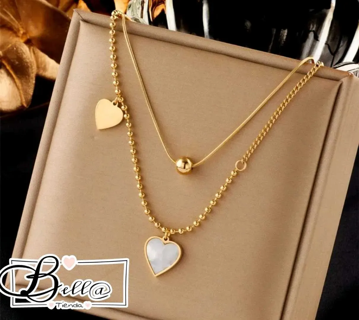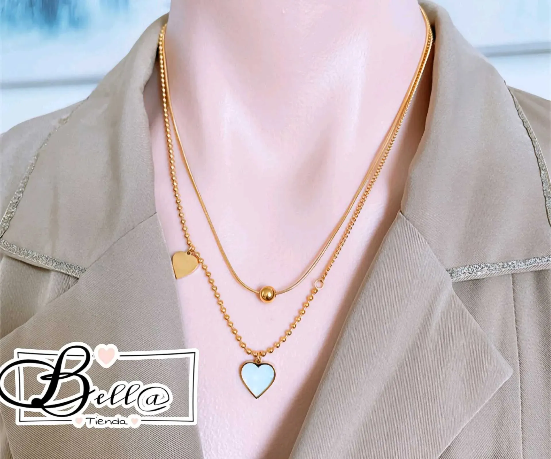 Collar Doble con Corazón y Balín 💛🟡✨️