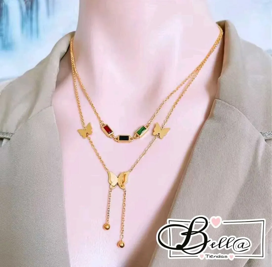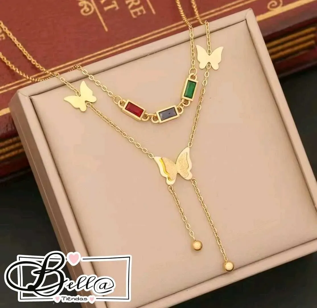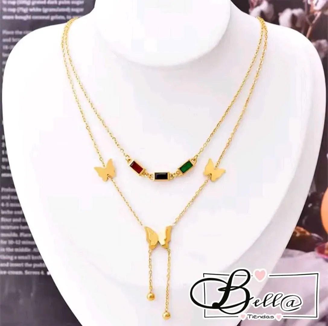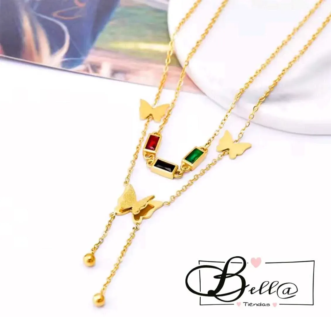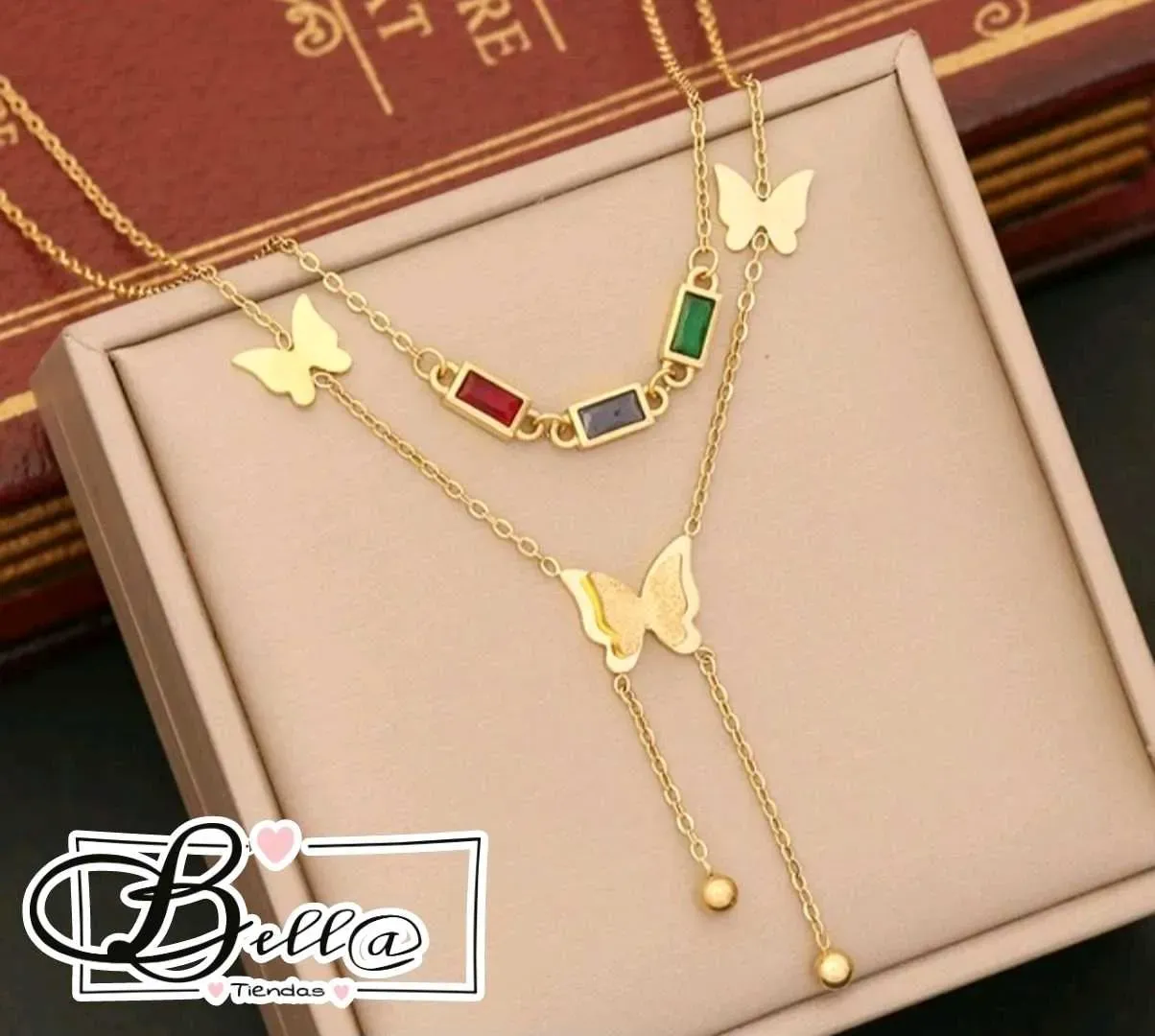 Collar Doble dije Mariposas y Colores 🦋💙💚