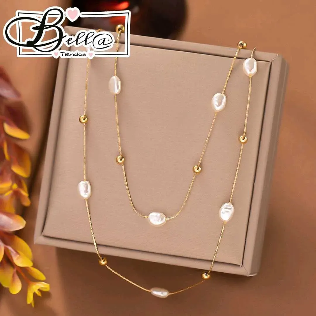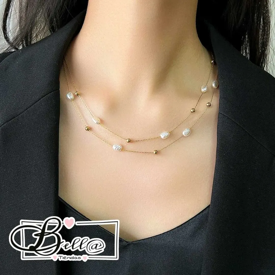 Collar Doble Perlas Ovaladitas ⚪️✨️