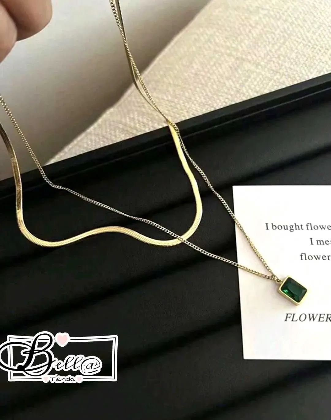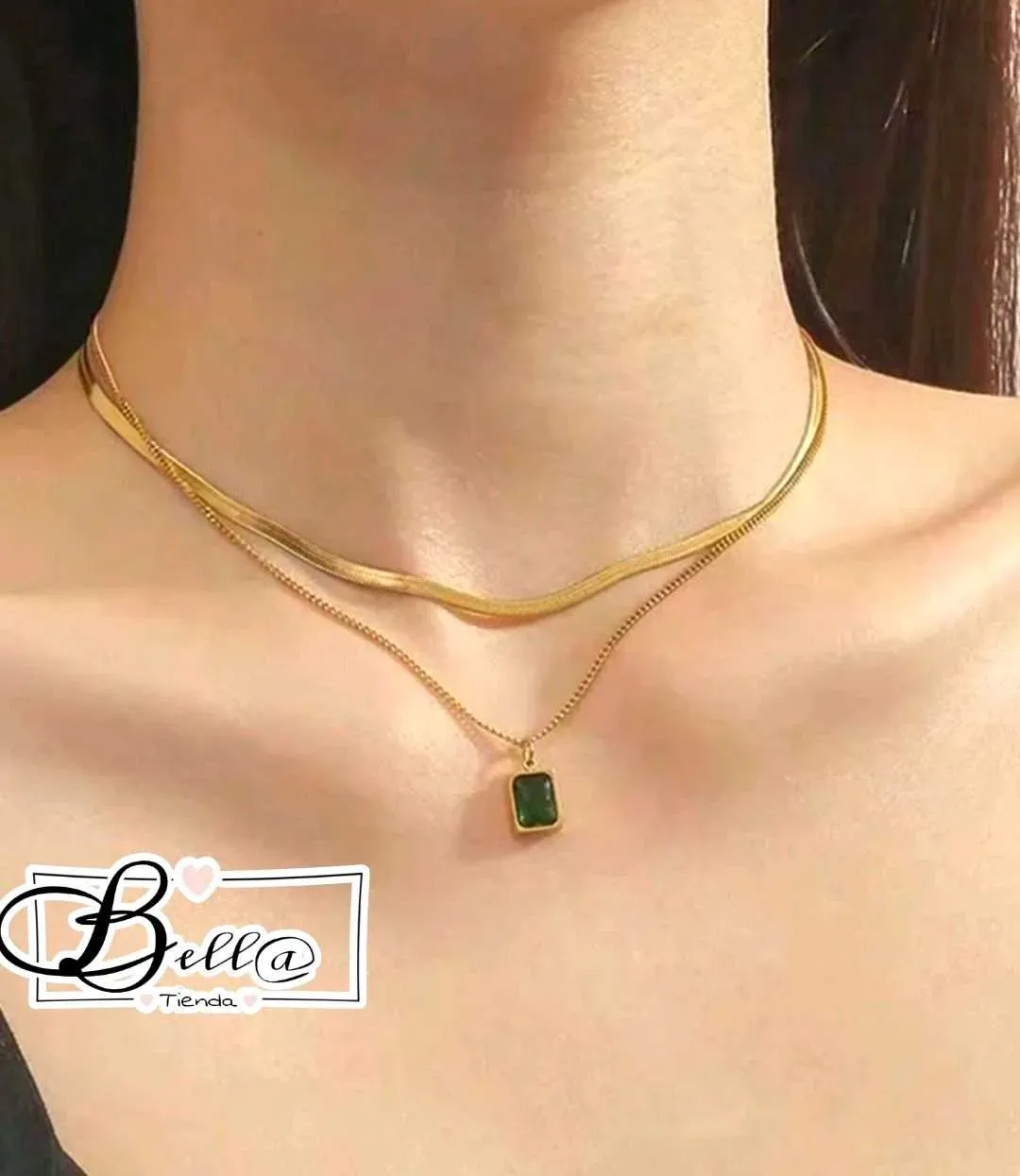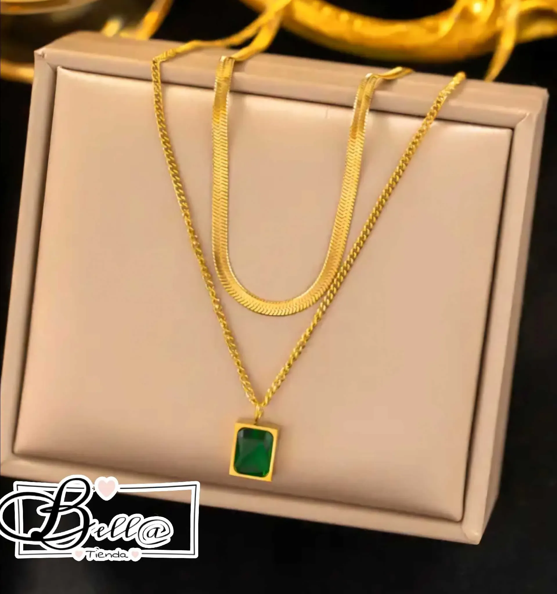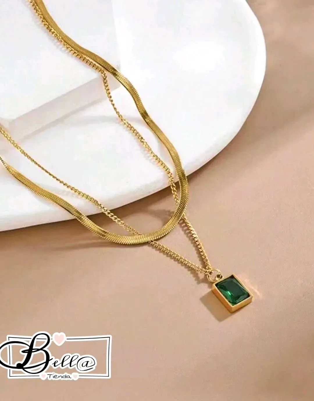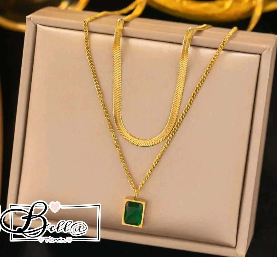 Collar Doble Piel de Serpiente dije Verde Esmeralda 💚✨️