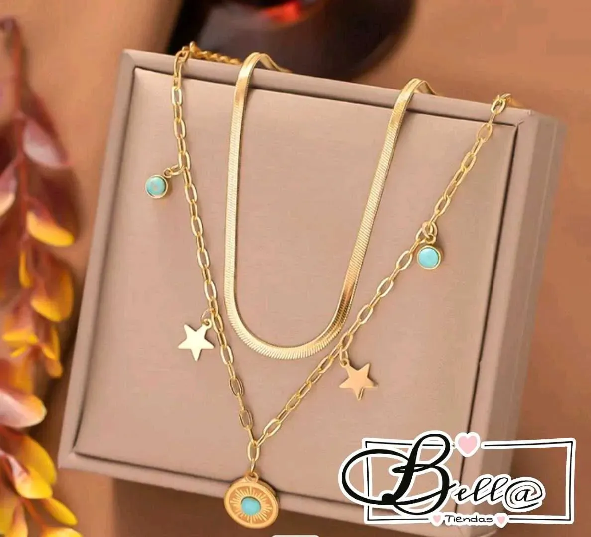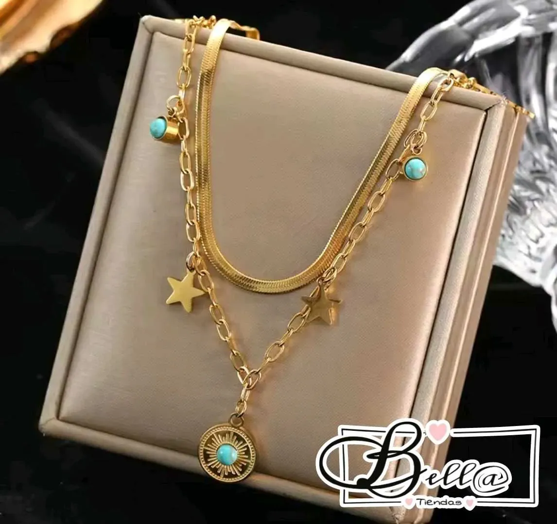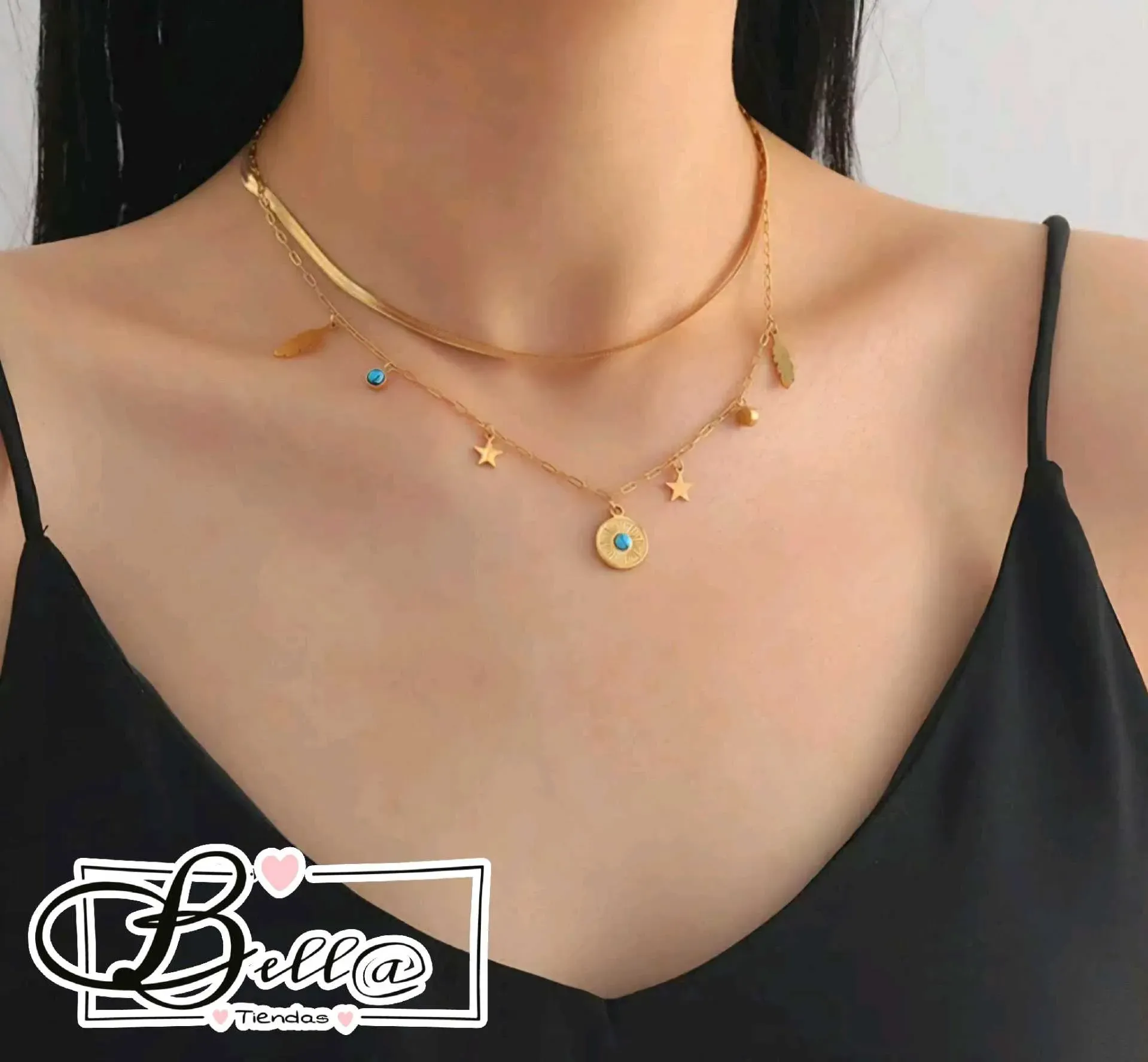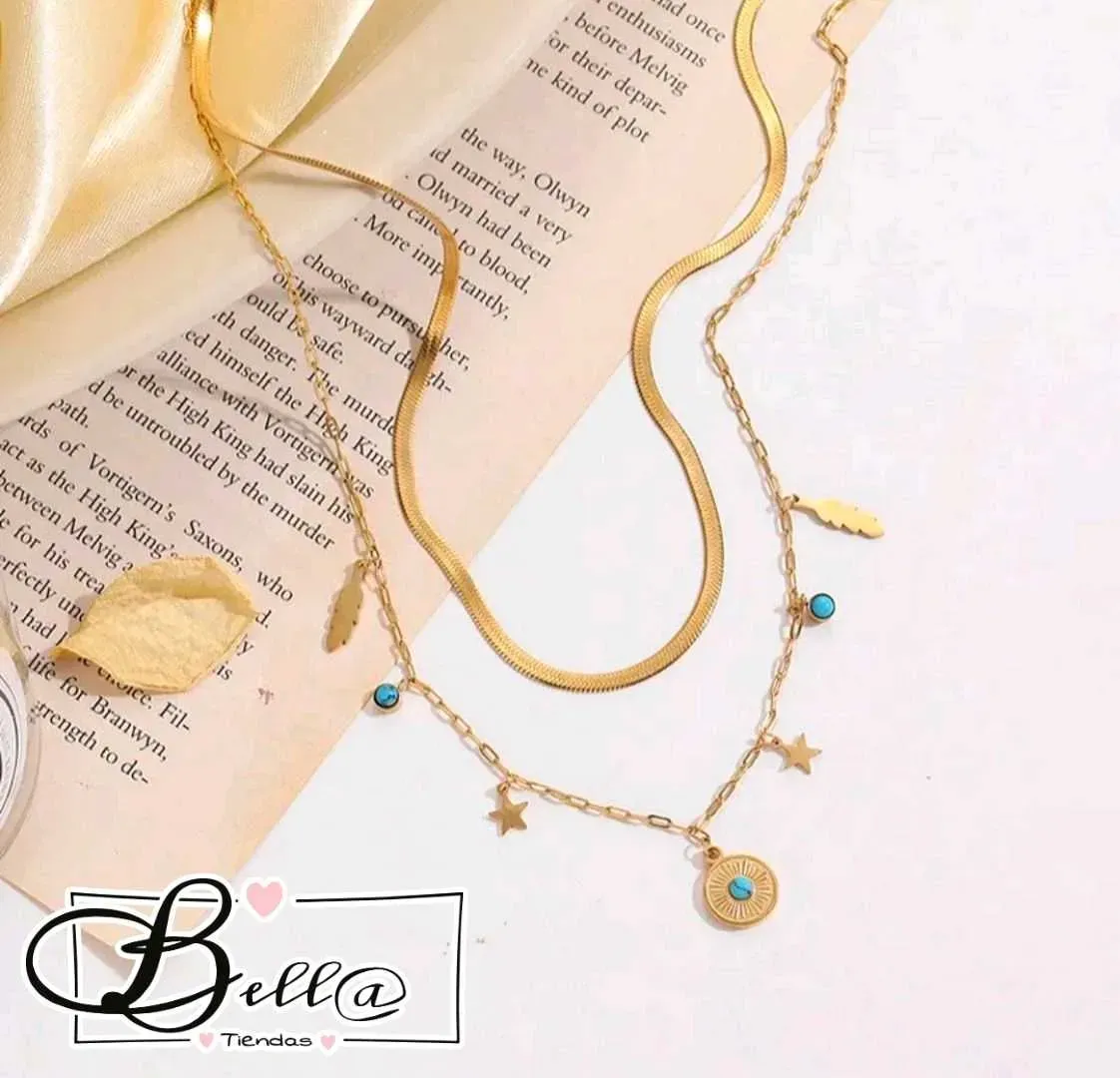 Collar Doble Piel de Serpiente dijes Estrellas y Detalles Azules 🩵