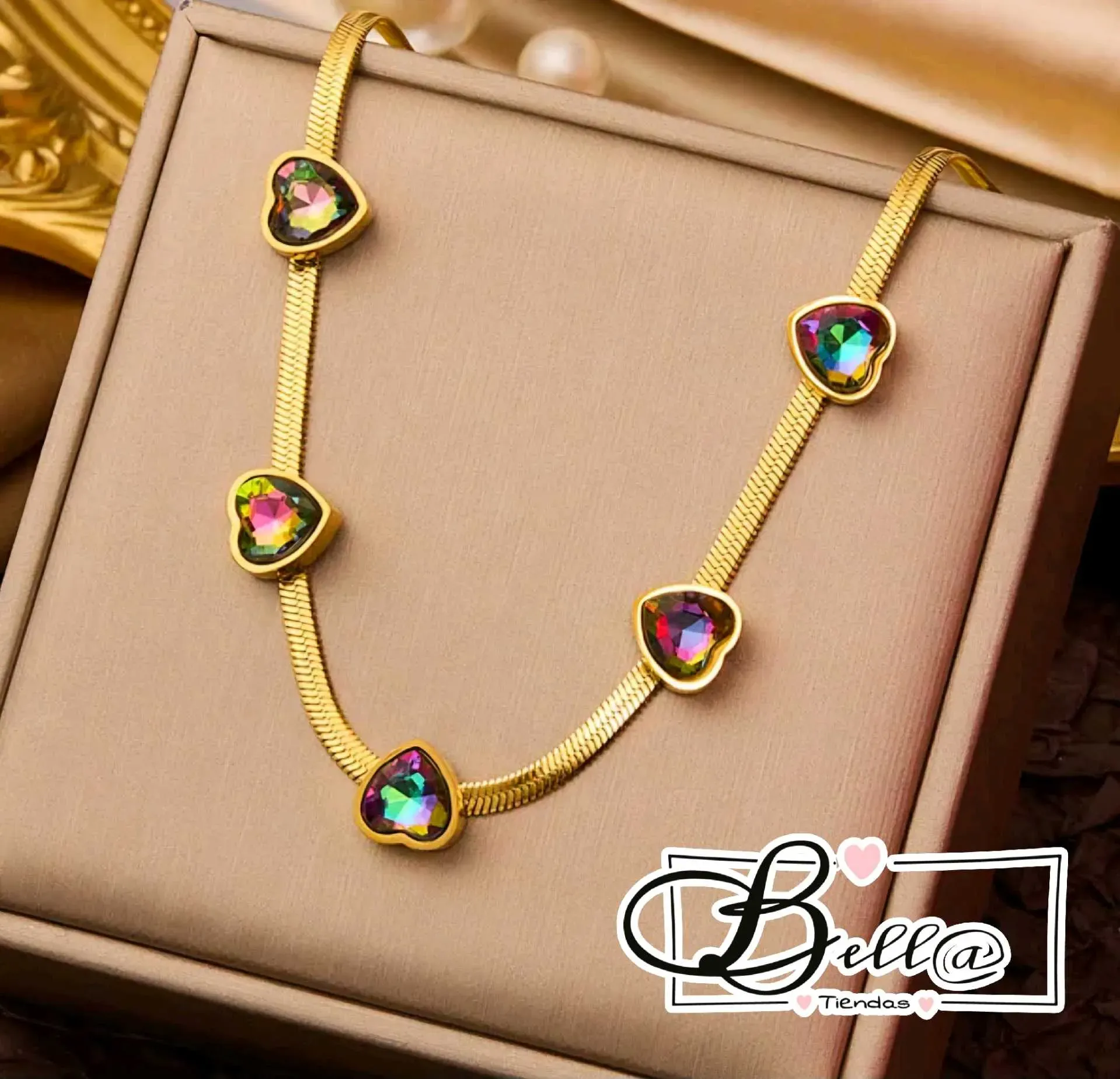 Collar Piel de Serpiente con Corazones Tornasol ✨️