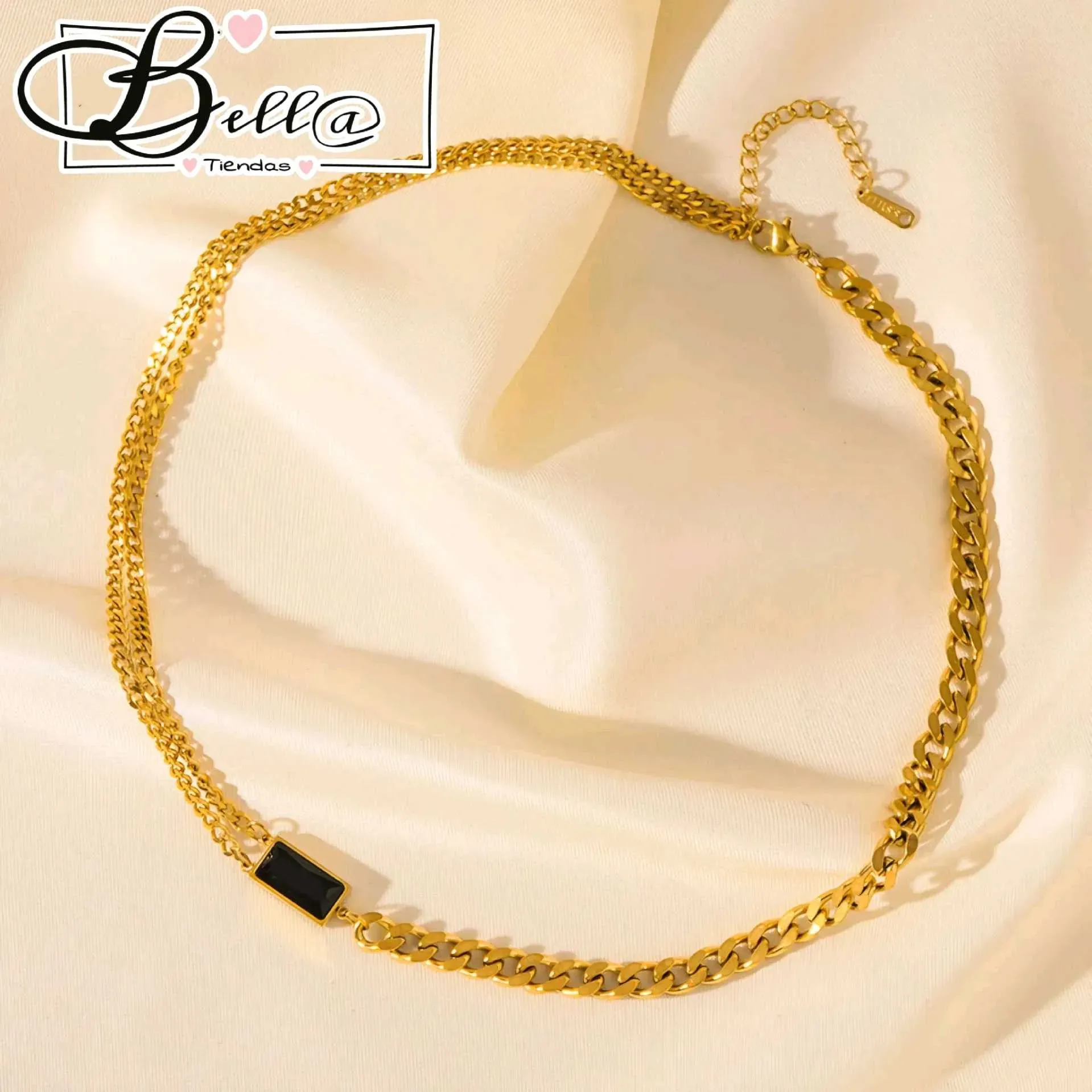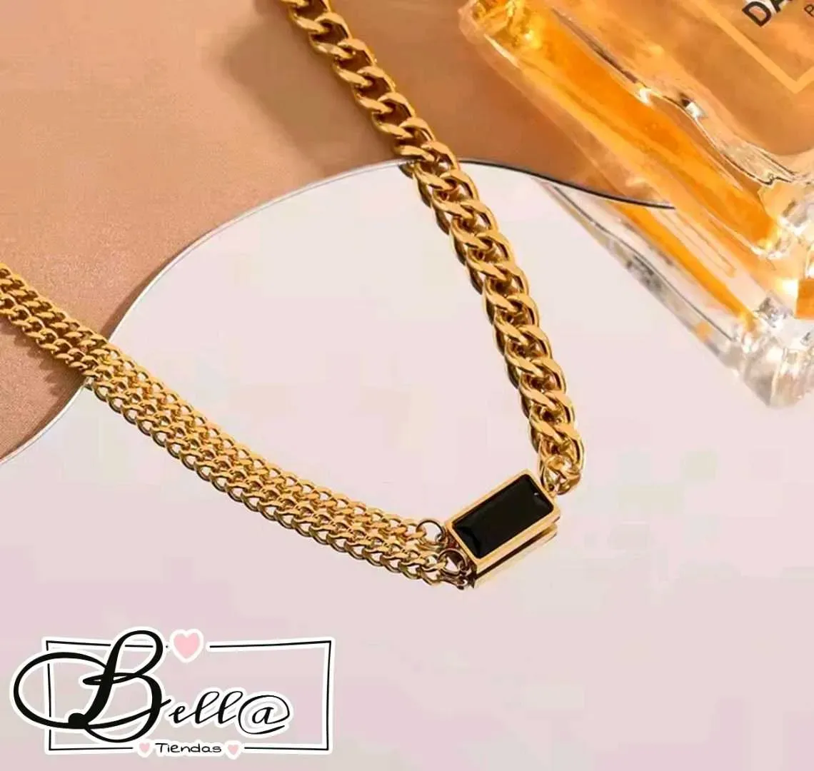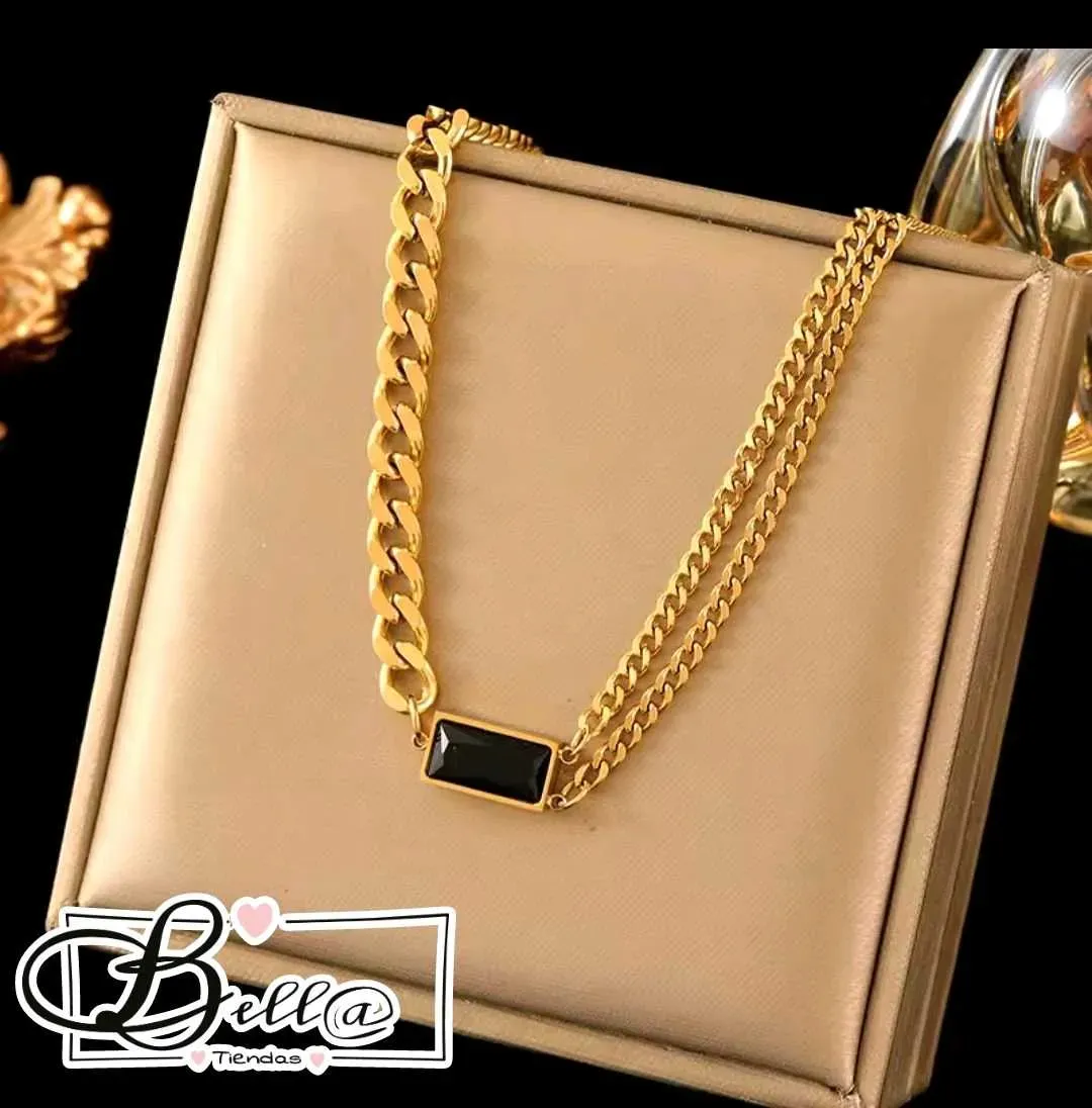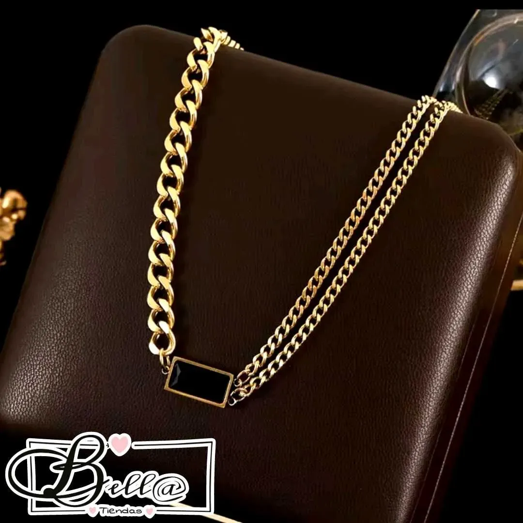 Collar Semi-Doble dije Placa Negra 🖤✨️