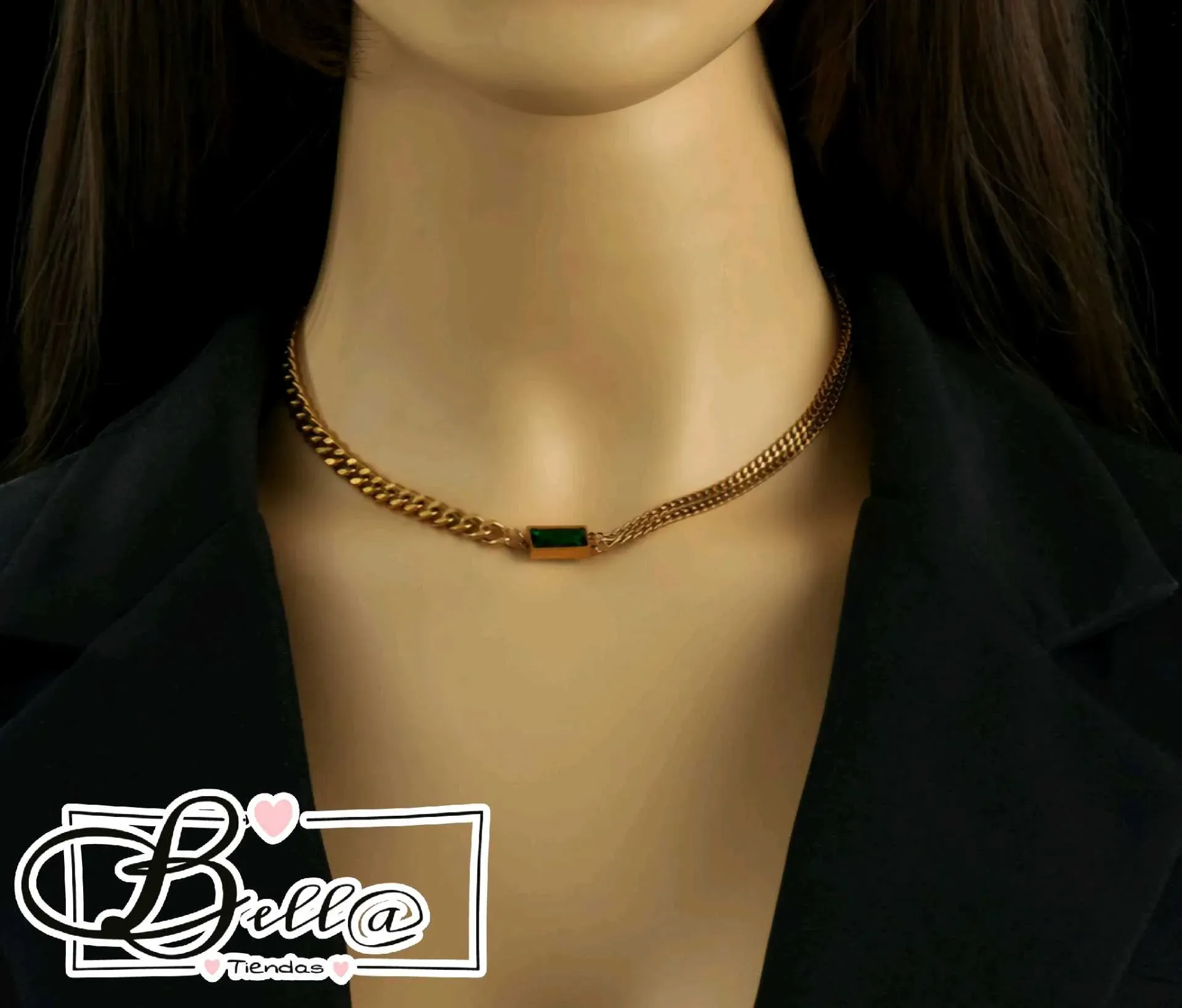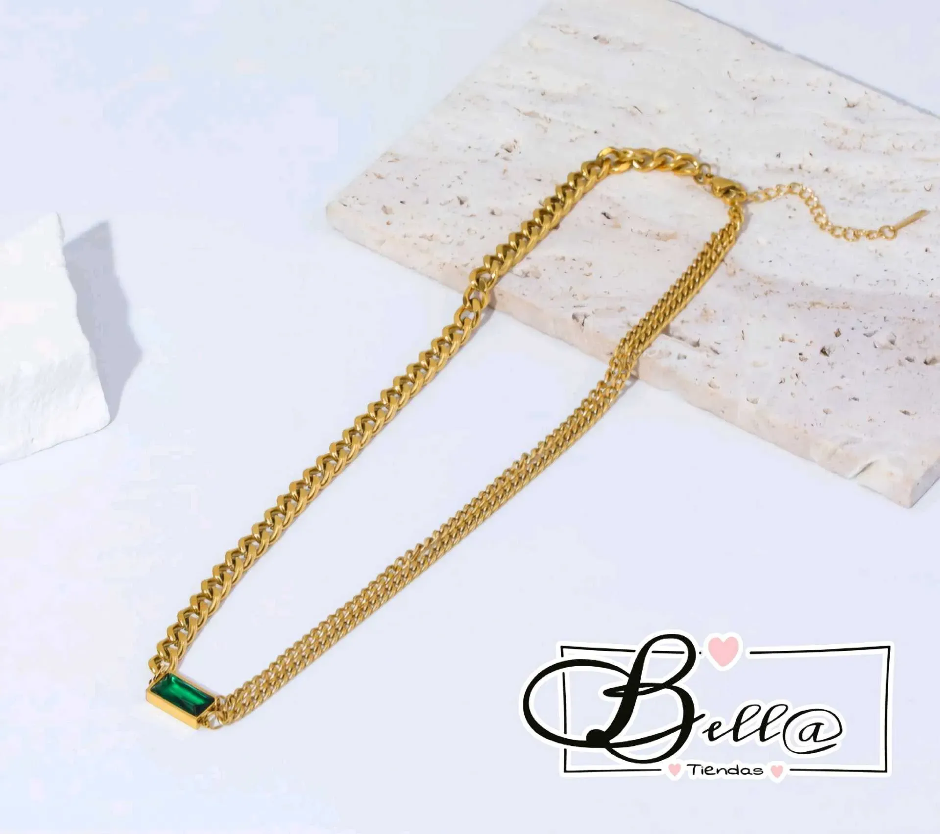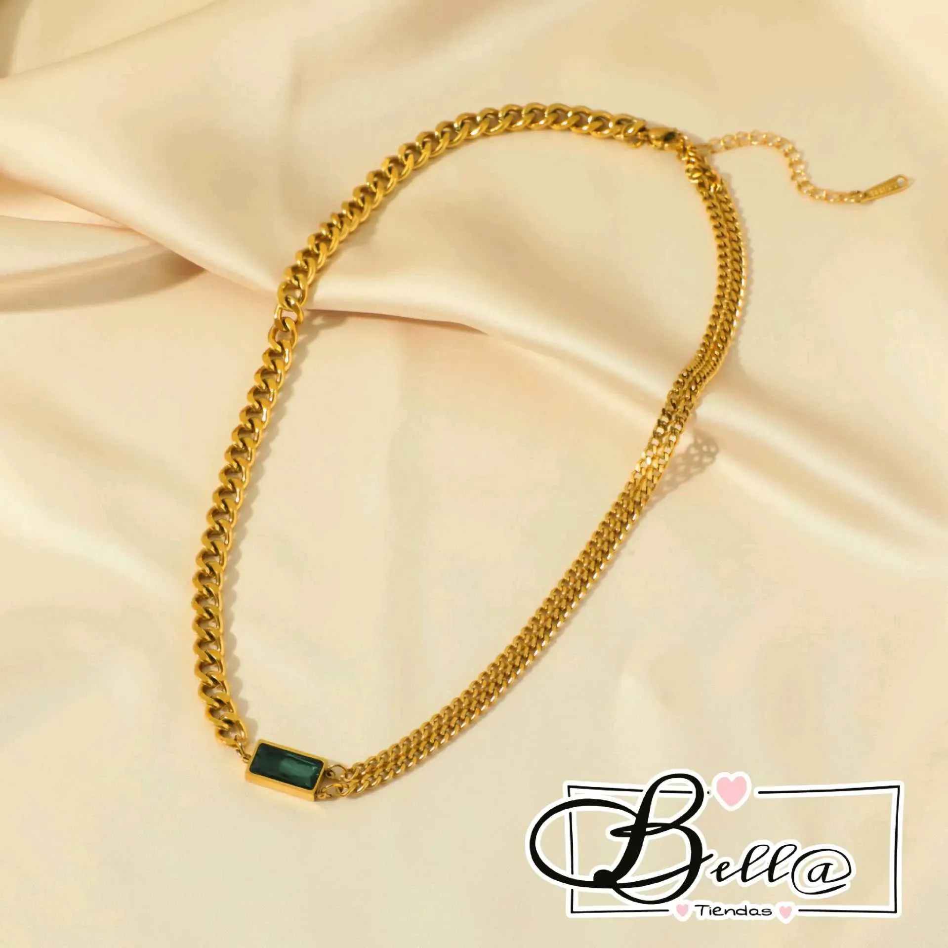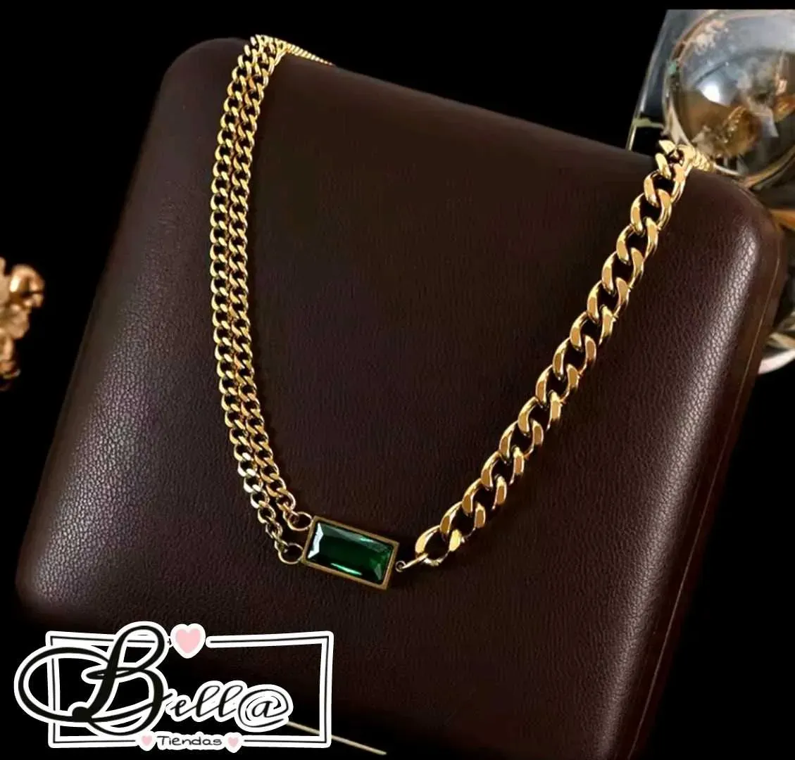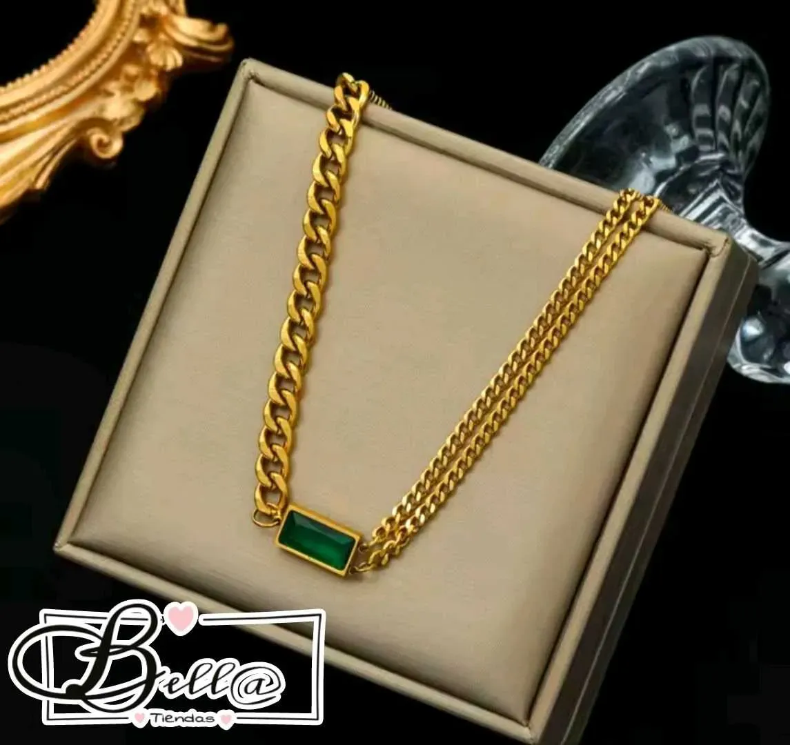 Collar Semi-Doble dije Placa Verde 💚✨️