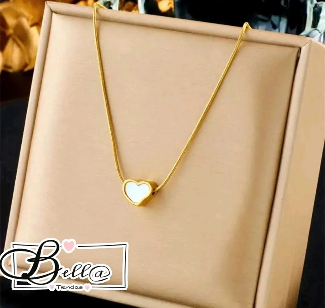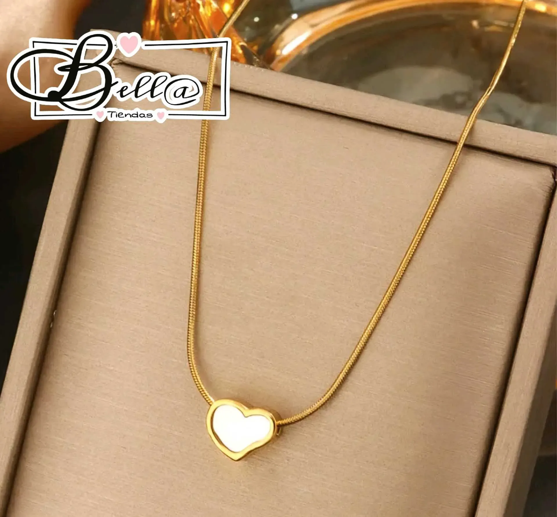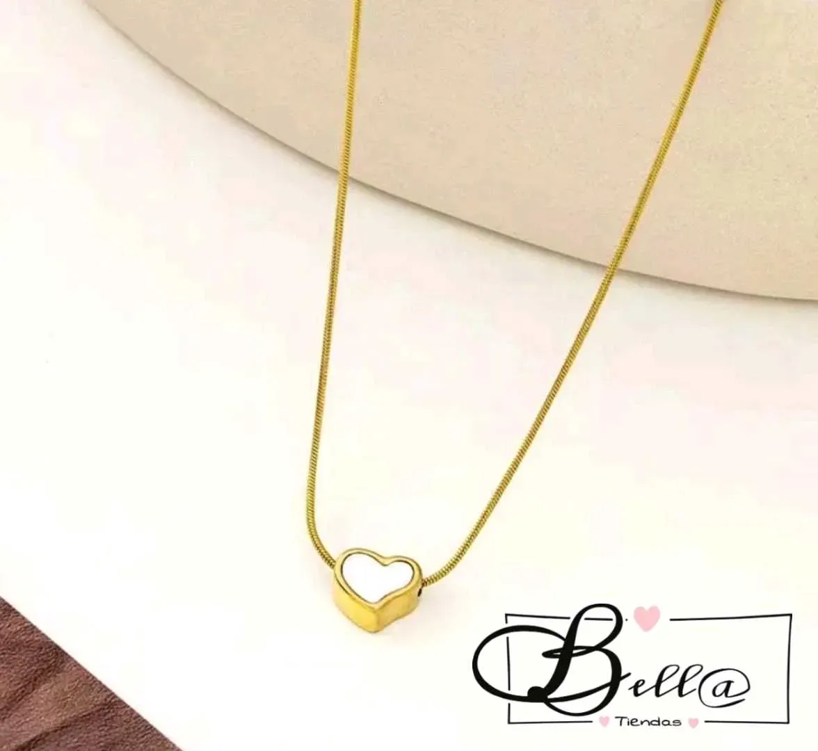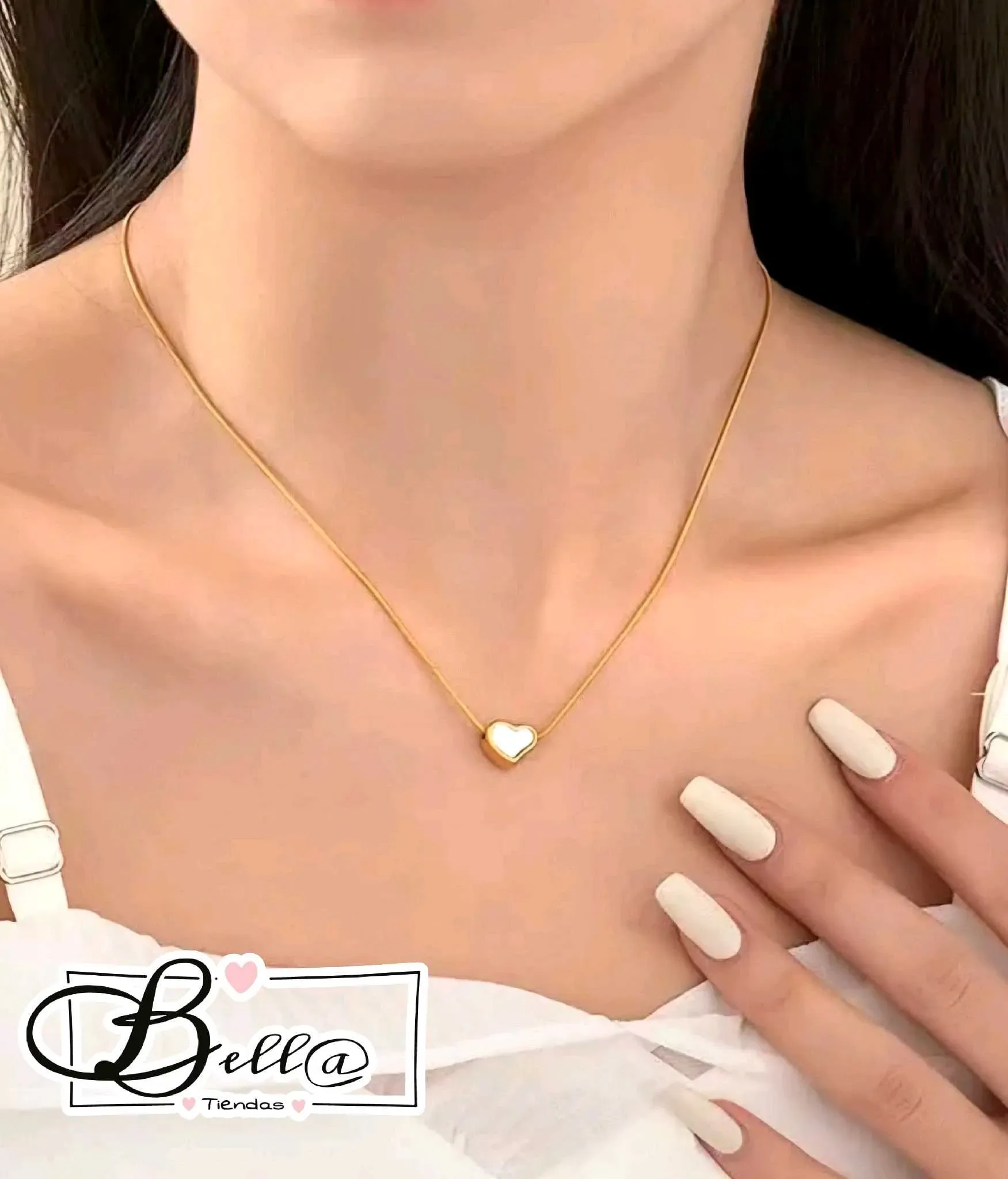 Collar Tejido Liso Corazón Blanco 🤍✨️