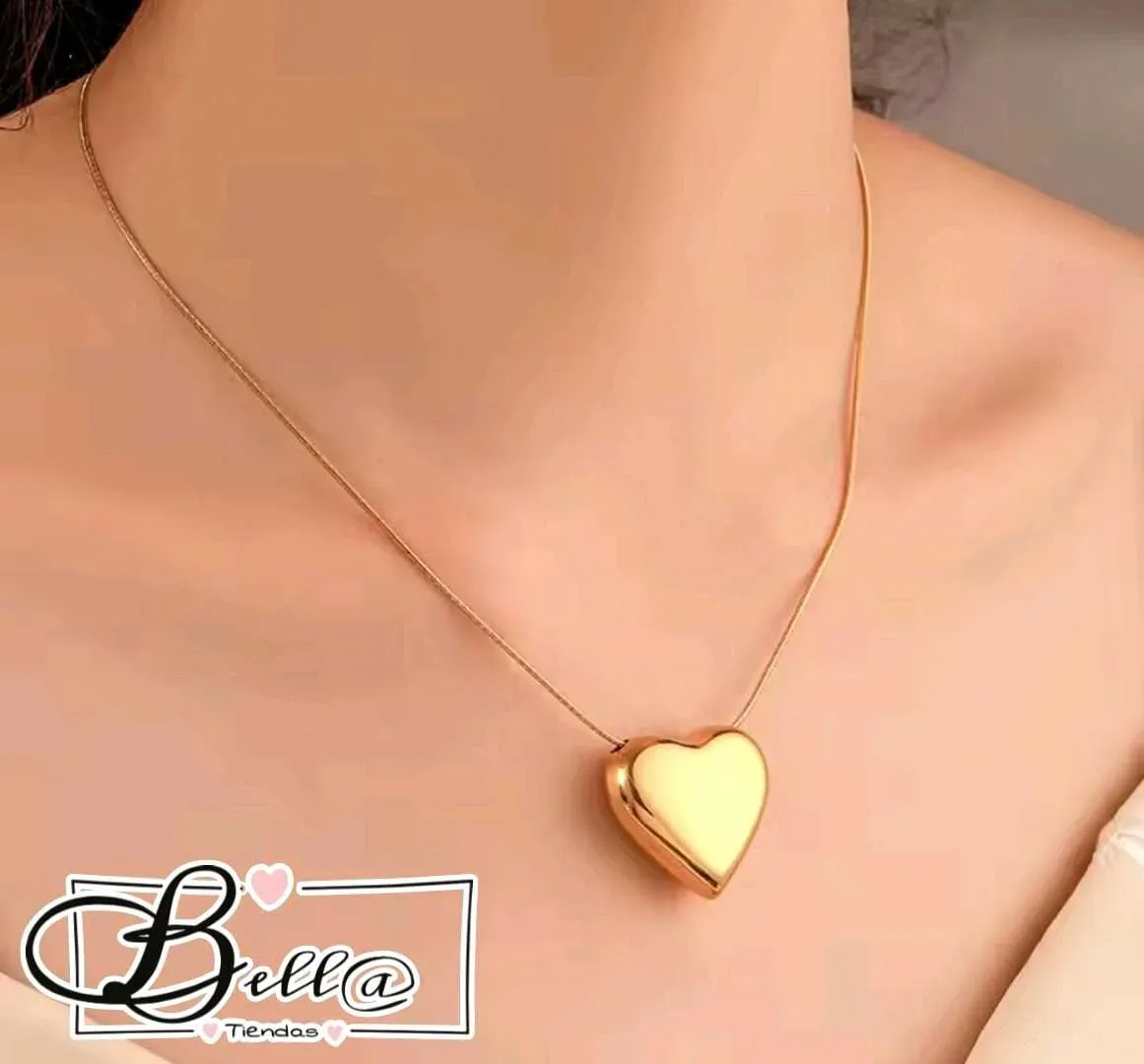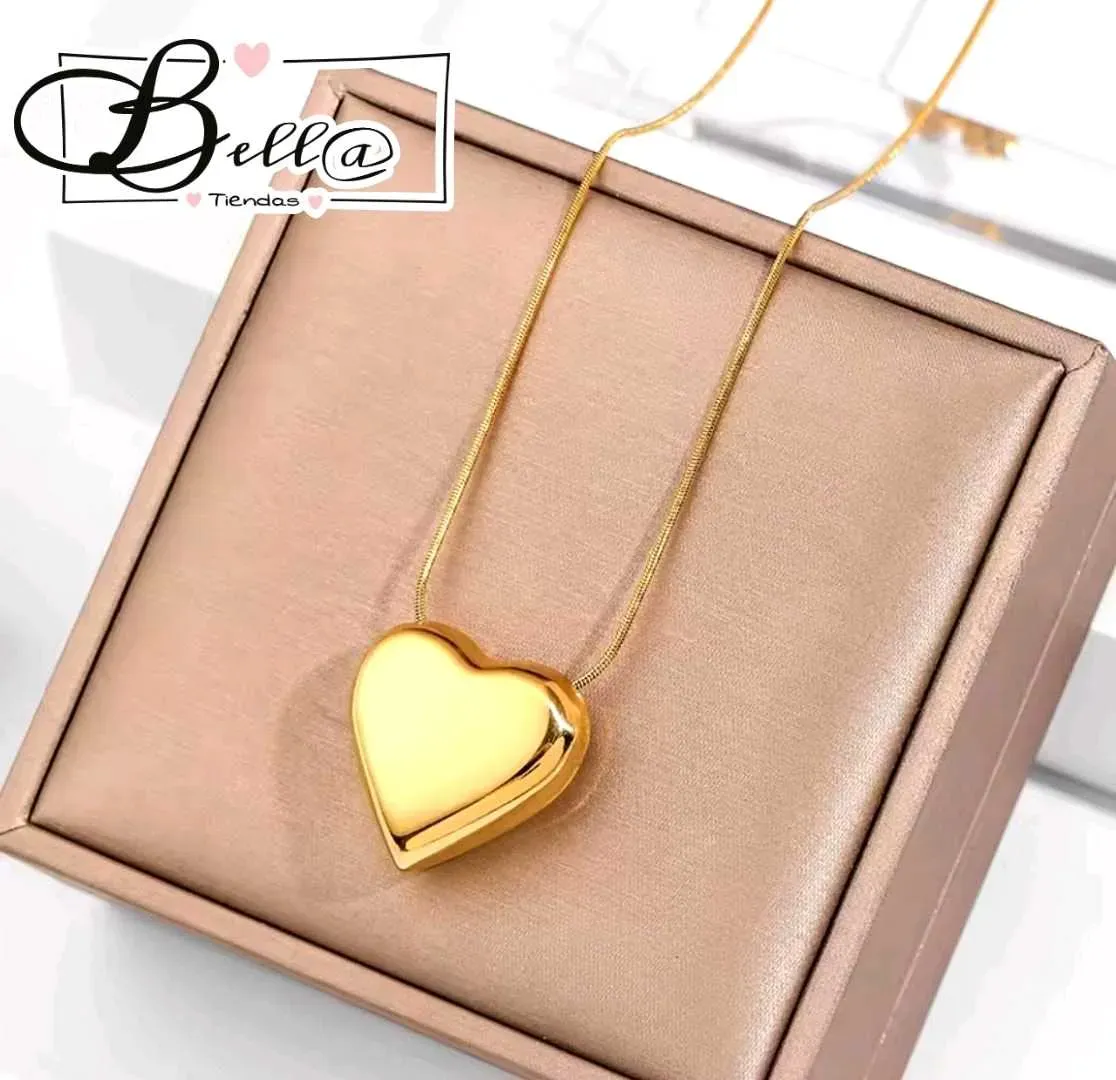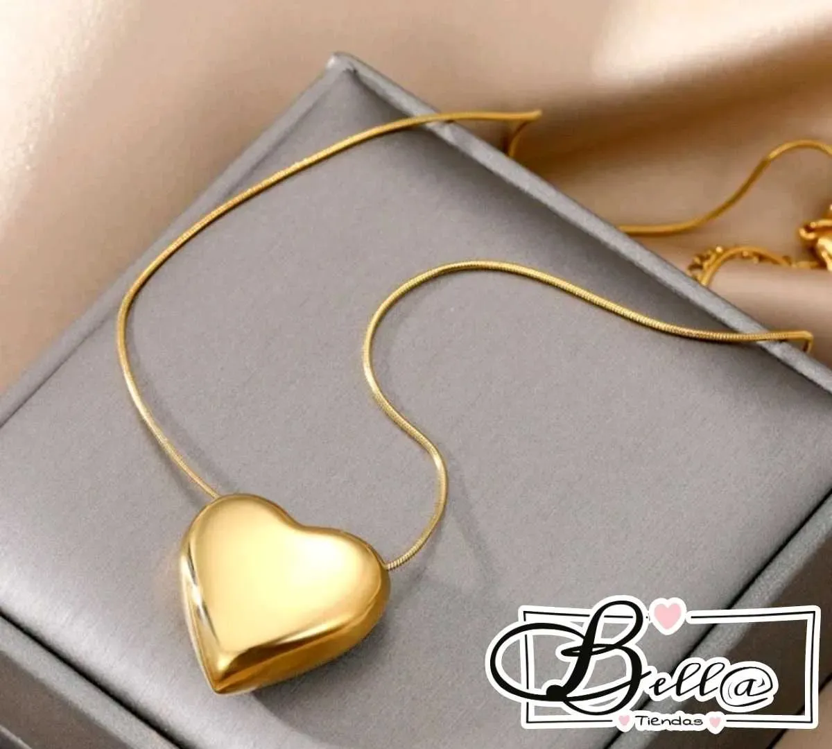 Collar Tejido Liso con Corazón Grande tipo Chunky 💛✨️