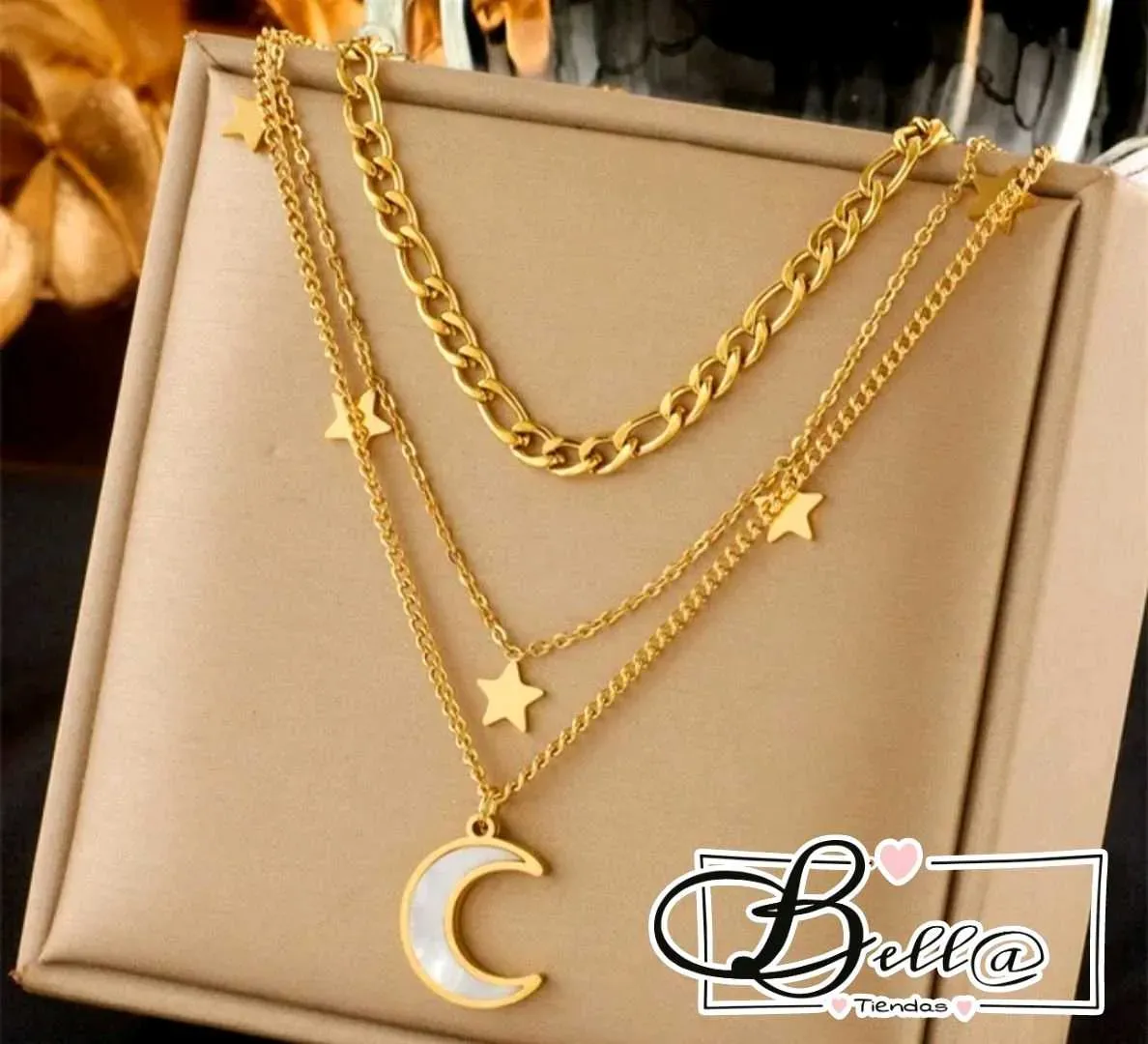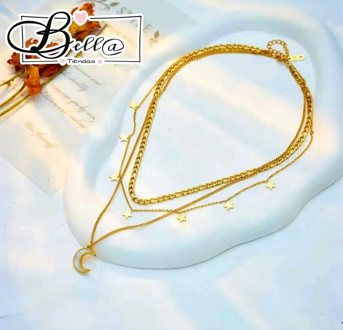 Collar Triple dijes Estrellas y Luna Blanca ✨️🌛