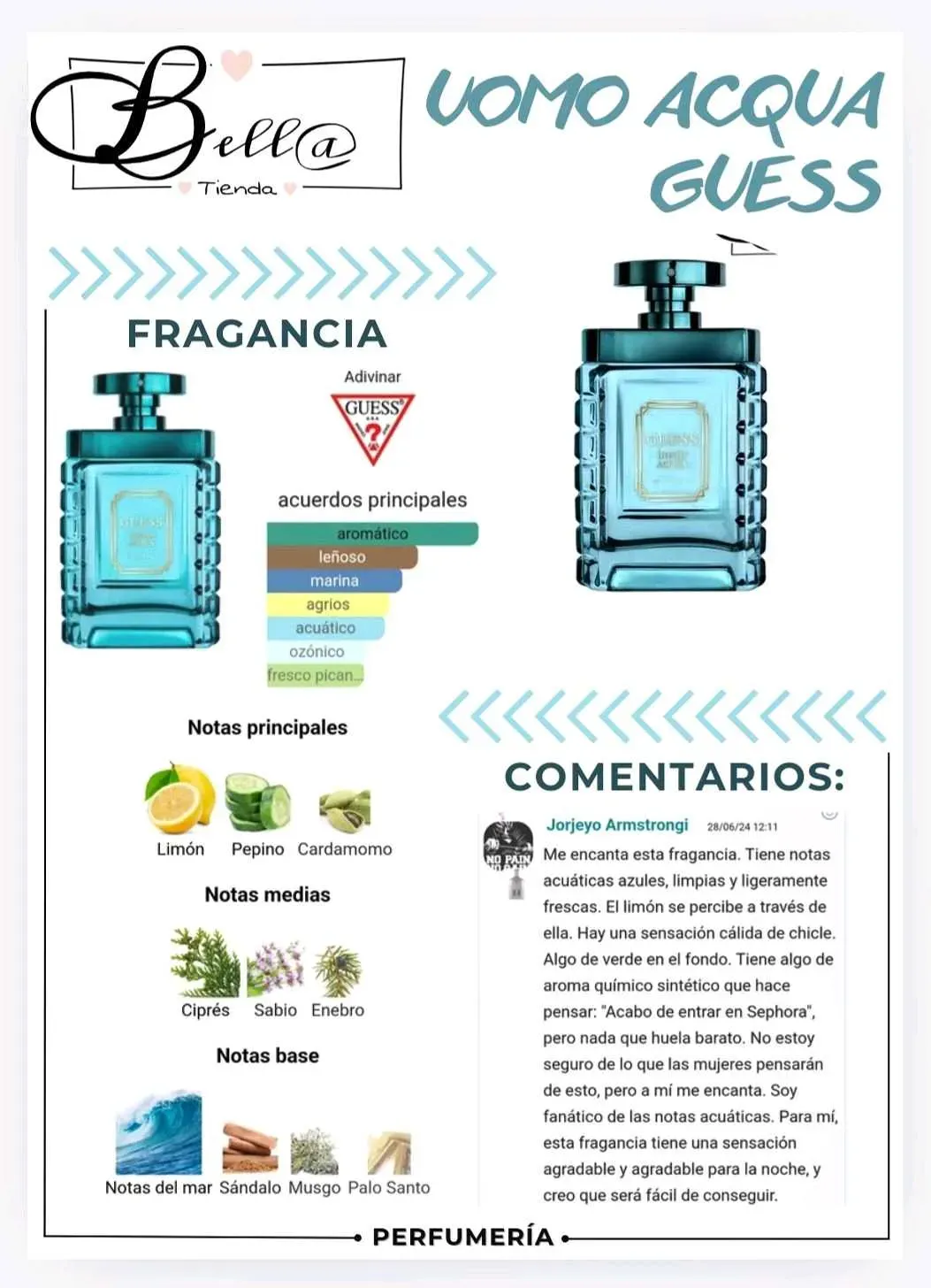 Las Notas de Salida son limón, pepino y cardamomo✨️